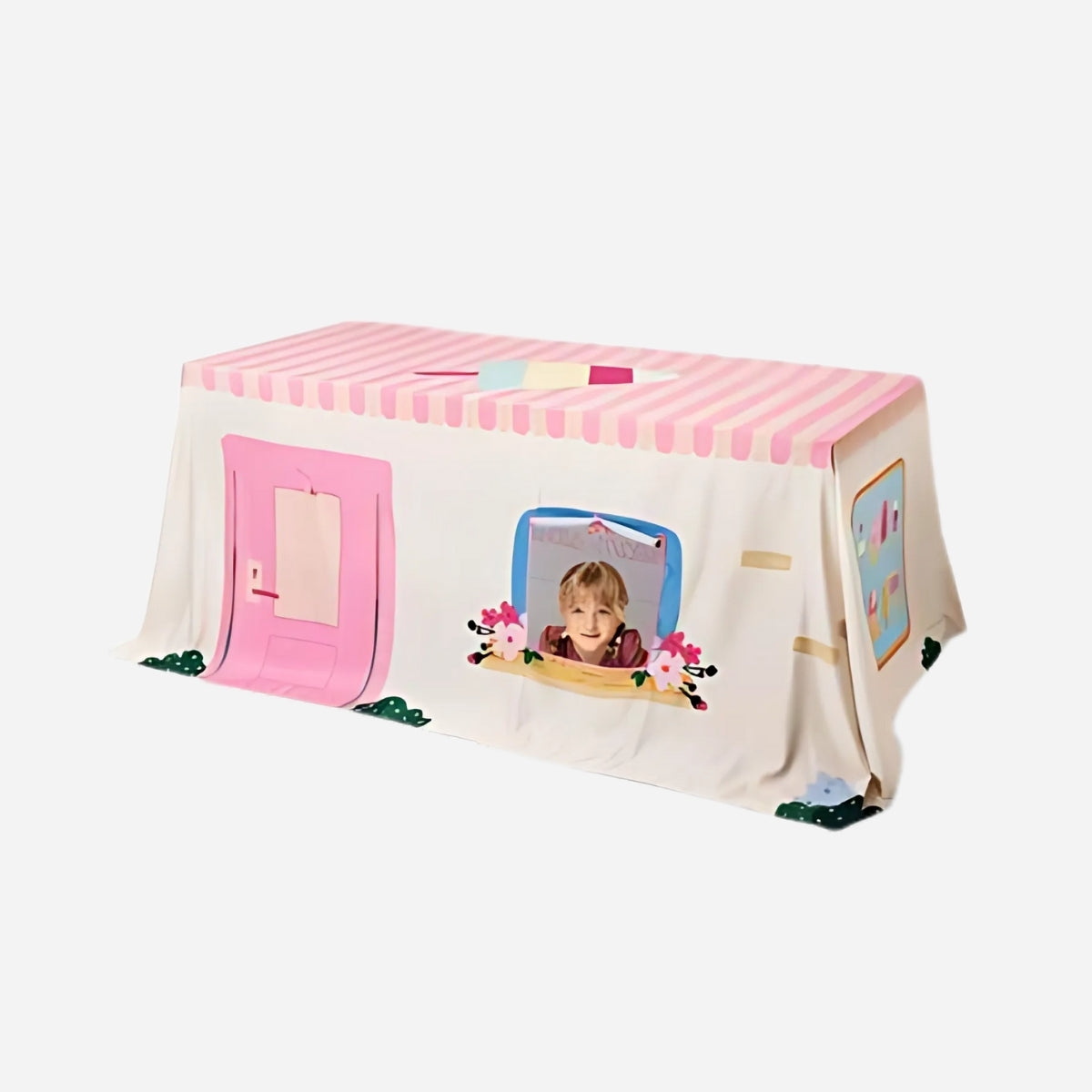 Yaz Temalı Oyun Çadırı, yaz mevsimiyle özdeşleşen dondurma, balkon sandalyeleri gibi neşeli detaylarıyla çocuklara eğlenceli ve renkli bir oyun alanı sunar. Bu çadır, çocukların hayal güçlerini kullanarak yaz temalı oyunlar oynamalarını teşvik eder. Dayanıklı malzemeden üretilmiş olan çadır, hem iç hem de dış mekanlarda kullanılabilecek şekilde tasarlanmıştır.