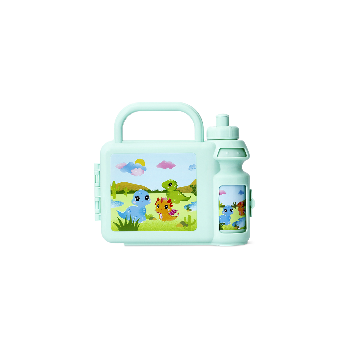Mataralı Yeşil Beslenme Çantası, üzerindeki sevimli dinozor desenleriyle yemek zamanlarını daha keyifli hale getirir. Beslenme çantası ve matara seti, çocukların kolayca taşıyabileceği saplı bavul tarzında bir tasarıma sahiptir ve uyumlu bir su şişesiyle gelir. Bu pratik set, okulda, gezilerde veya dışarıda yemek yerken mükemmel bir arkadaştır. Plastik malzeme, hafifliği ve dayanıklılığı ile kolay kullanım sağlar, ayrıca su şişesi 40°C'ye kadar içecekler için uygundur, bu da onu sıcak ve soğuk içecekler için ideal kılar.
