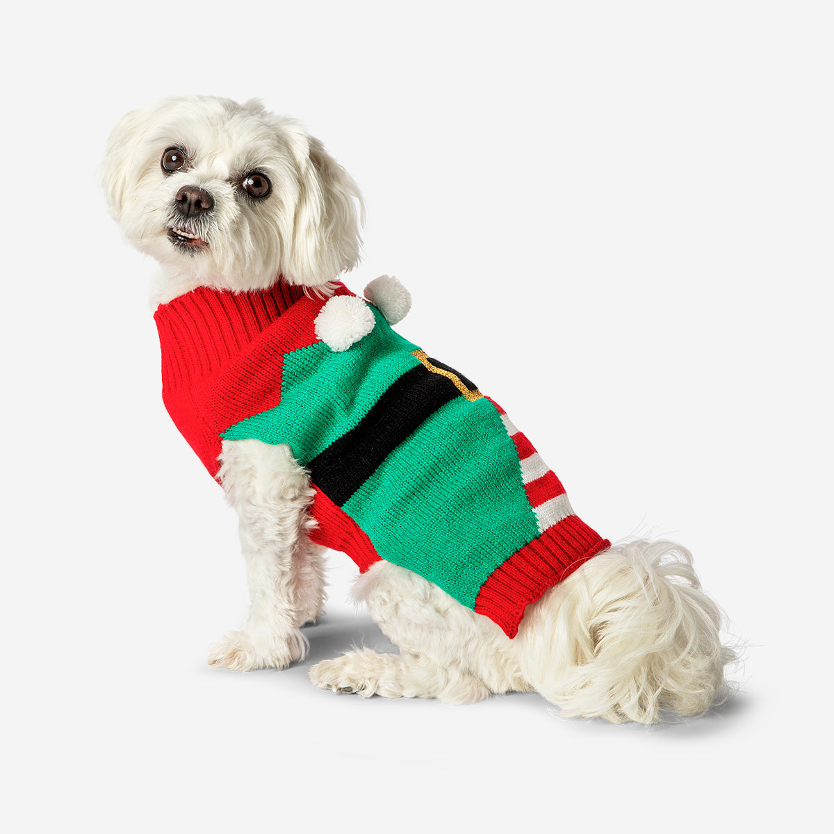 Elf Temalı Köpek Kazağı, köpeğinizi Noel ruhuna sokmanın eğlenceli ve renkli bir yoludur. Kırmızı, yeşil ve beyaz tonlarının enerjik karışımıyla tasarlanan bu kazak, üzerindeki ponpon detayları ve baskılı kemer deseniyle dikkat çeker. 1 x 36 x 18 cm boyutlarındaki bu ürün, yumuşak dokusu sayesinde hem evde hem de dışarıda konforlu bir kullanım sunar. Esnek kumaşı sayesinde kolayca giydirilip çıkarılabilir, bu da onu günlük yürüyüşler veya tatil gezintileri için mükemmel bir seçenek haline getirir.