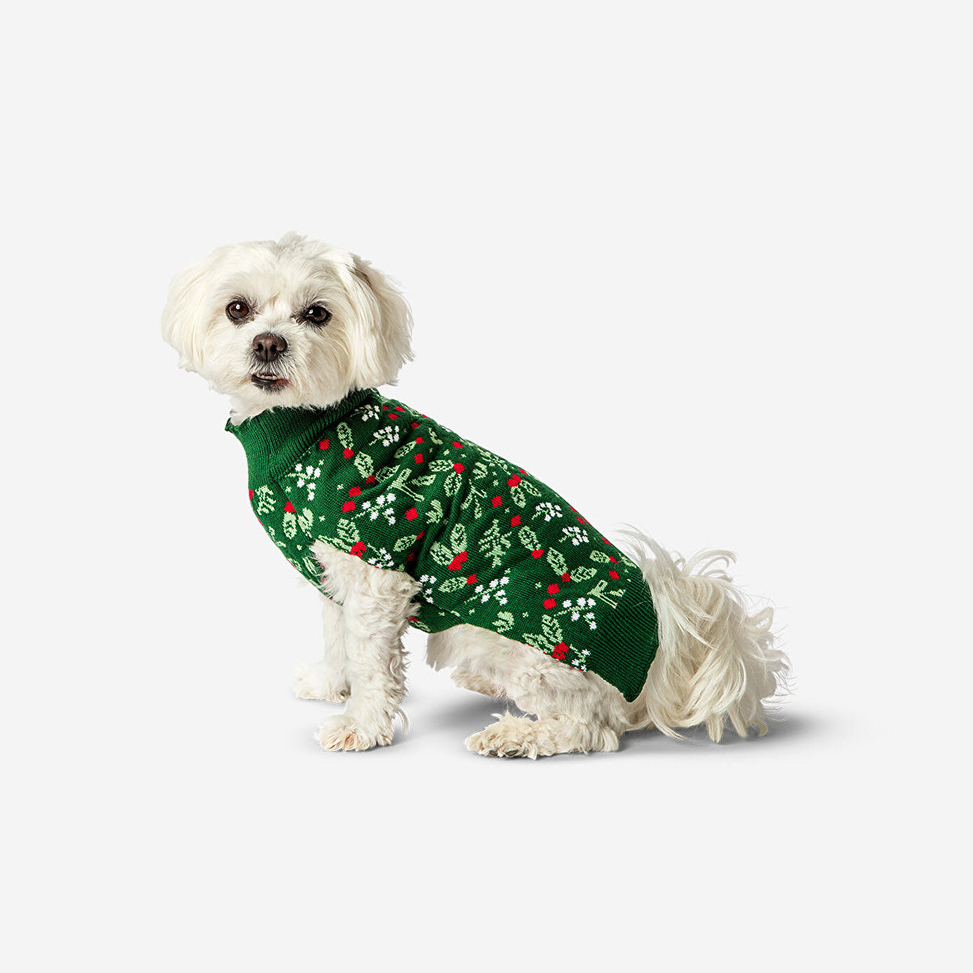 Yılbaşı Temalı Köpek Kazağı, evcil dostunuzun kış gardırobuna sıcaklık ve şenlikli bir stil katar. 0,3 x 35,3 x 18 cm boyutlarındaki bu kazak, yeşil zemin üzerine işlenmiş çobanpüskülü desenleri, kırmızı meyveleri ve beyaz vurgularıyla klasik bir yılbaşı havası taşır. Yumuşak ve hafif dokusu, köpeğinizin rahat hareket etmesini sağlarken, soğuk günlerde vücut ısısını korumasına yardımcı olur. Giyip çıkarması kolay olan esnek yapısı sayesinde hem evde dinlenirken hem de dışarıda yürüyüş yaparken rahatça kullanılabilir.