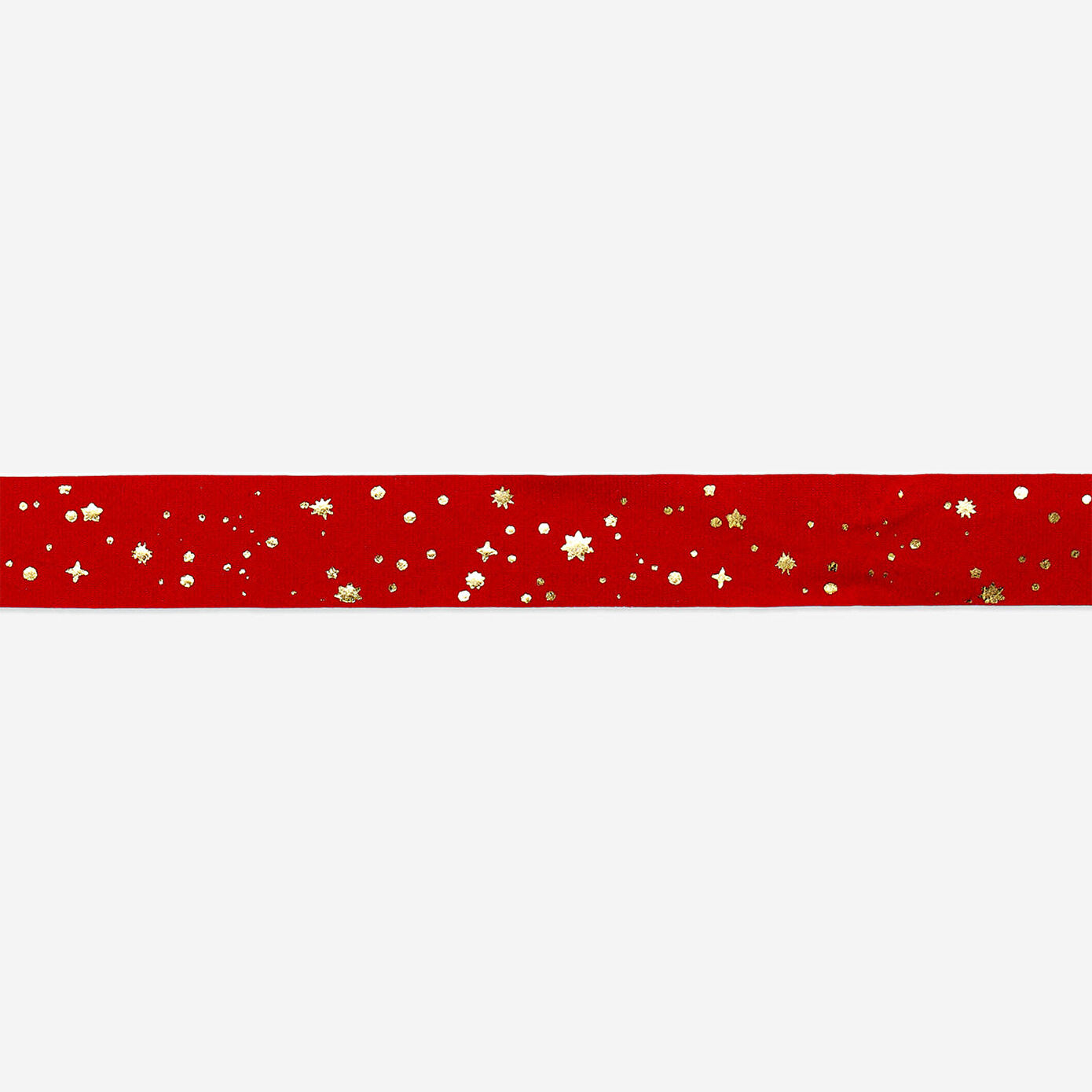 Altın Detaylı Kırmızı Kadife Kurdele, Noel paketlerinize klasik bir zarafet ve sıcaklık katmak için mükemmel bir seçimdir. 1,5 cm genişliğinde ve 5 metre uzunluğundaki bu kurdele, narin altın noktalarla süslenmiş kadife dokusuyla her hediye sunumuna sofistike bir hava kazandırır. Geri dönüştürülmüş polyesterden üretilen yapısı, hem çevre dostu hem de dayanıklıdır. Cesur kırmızı tonu ve ince altın vurgular, ışığı yumuşak bir şekilde yansıtarak hediyelerinize göz alıcı bir ışıltı katar.