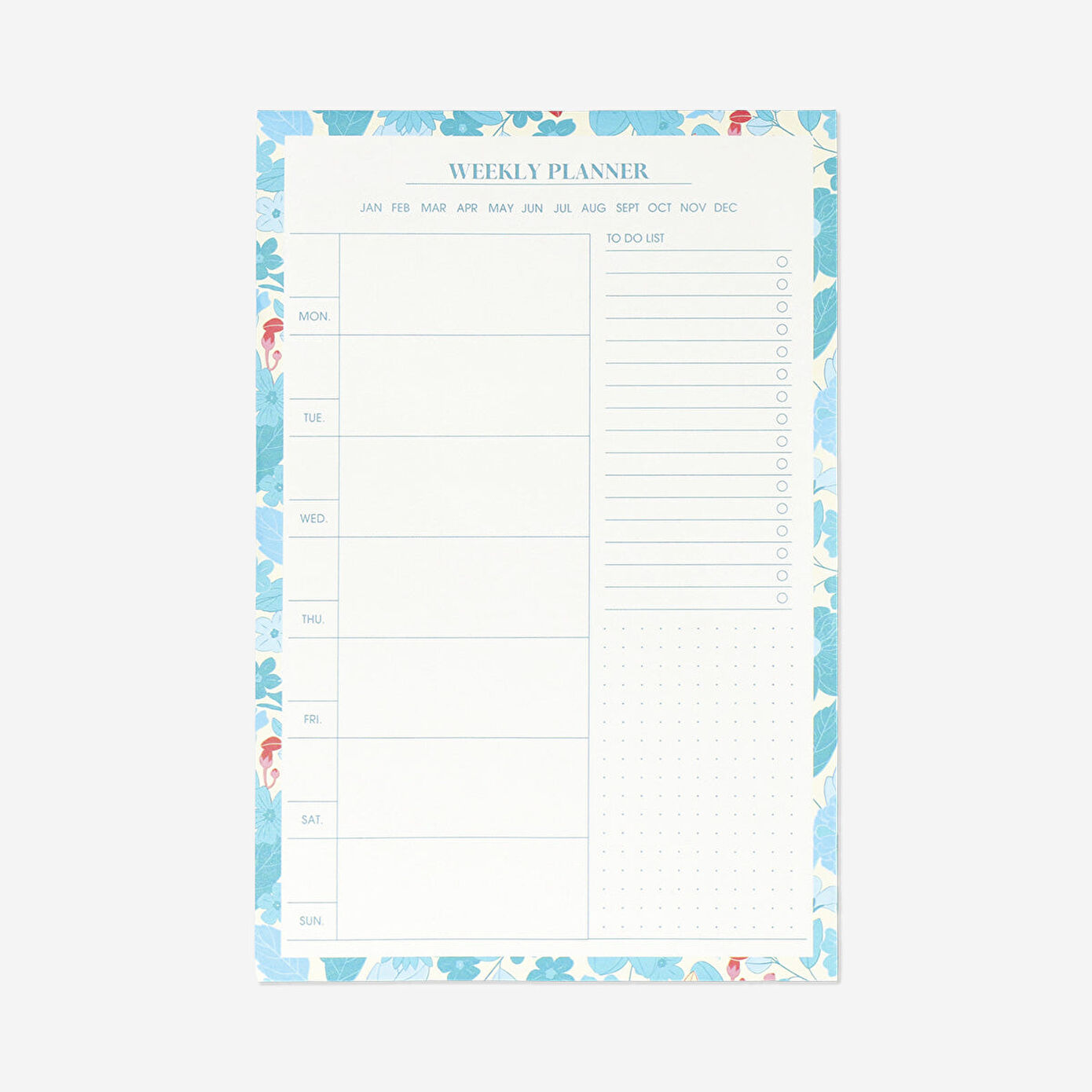 Günlük Planlayıcı Mavi Not Defteri A5, sakinleştirici mavi çiçekli kenarlığıyla planlama alanınıza eğlenceli ve neşeli bir ferahlık katar. Randevularınızı, hedeflerinizi ve günlük görevlerinizi düzenli bir şekilde takip etmenizi sağlayarak haftanızı daha kontrollü geçirmenize yardımcı olur. Her gün için ayrılmış bölümleri sayesinde planlarınız gözünüzün önünde olur ve zaman yönetiminiz kolaylaşır. Şık tasarımıyla masanıza hem düzen hem de pozitif bir enerji kazandırır. Günlük Planlayıcı Mavi Not Defteri A5, kağıttan üretilmiş sayfalarıyla akıcı ve rahat bir yazım deneyimi sunar. Notlar ve yapılacaklar listesi için ayrılan ekstra alanlar, yoğun haftalarda bile organize kalmanızı sağlar. Evde, ofiste ya da okulda kullanıma uygun yapısıyla her ortamda pratiklik sunar. Masanıza renk, günlerinize düzen ve planlarınıza neşeli bir motivasyon katan keyifli bir planlama arkadaşıdır. Ölçü: 14,8 x 21 cm