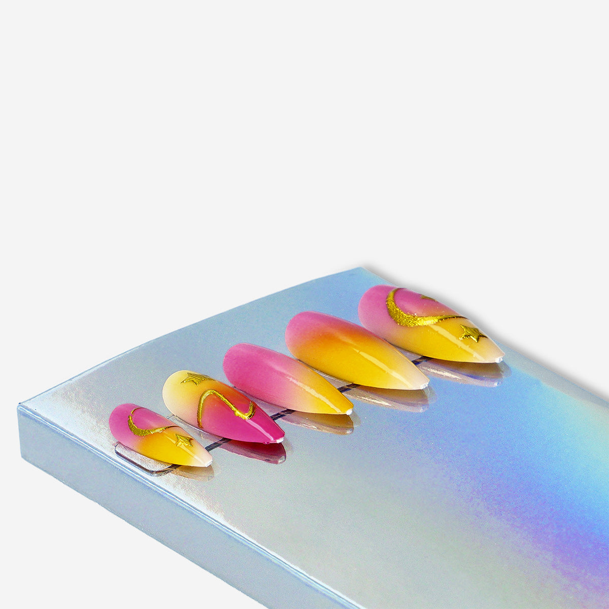 Altın Detaylı Takma Tırnak Seti, manikürünüze neşeli, sevimli ve eğlenceli bir parlaklık katan şık bir seçenektir. Yumuşak gradyan üzerine eklenen ince altın detaylar, tırnaklara zahmetsizce göz alıcı bir hava verir. Plastikten üretilen her bir tırnak, doğal tırnağa rahatça oturacak şekilde şekillendirilmiştir ve hızlı uygulama için idealdir. Günlük stilinize uyum sağlarken özel günlerde de zarif bir dokunuş oluşturur.