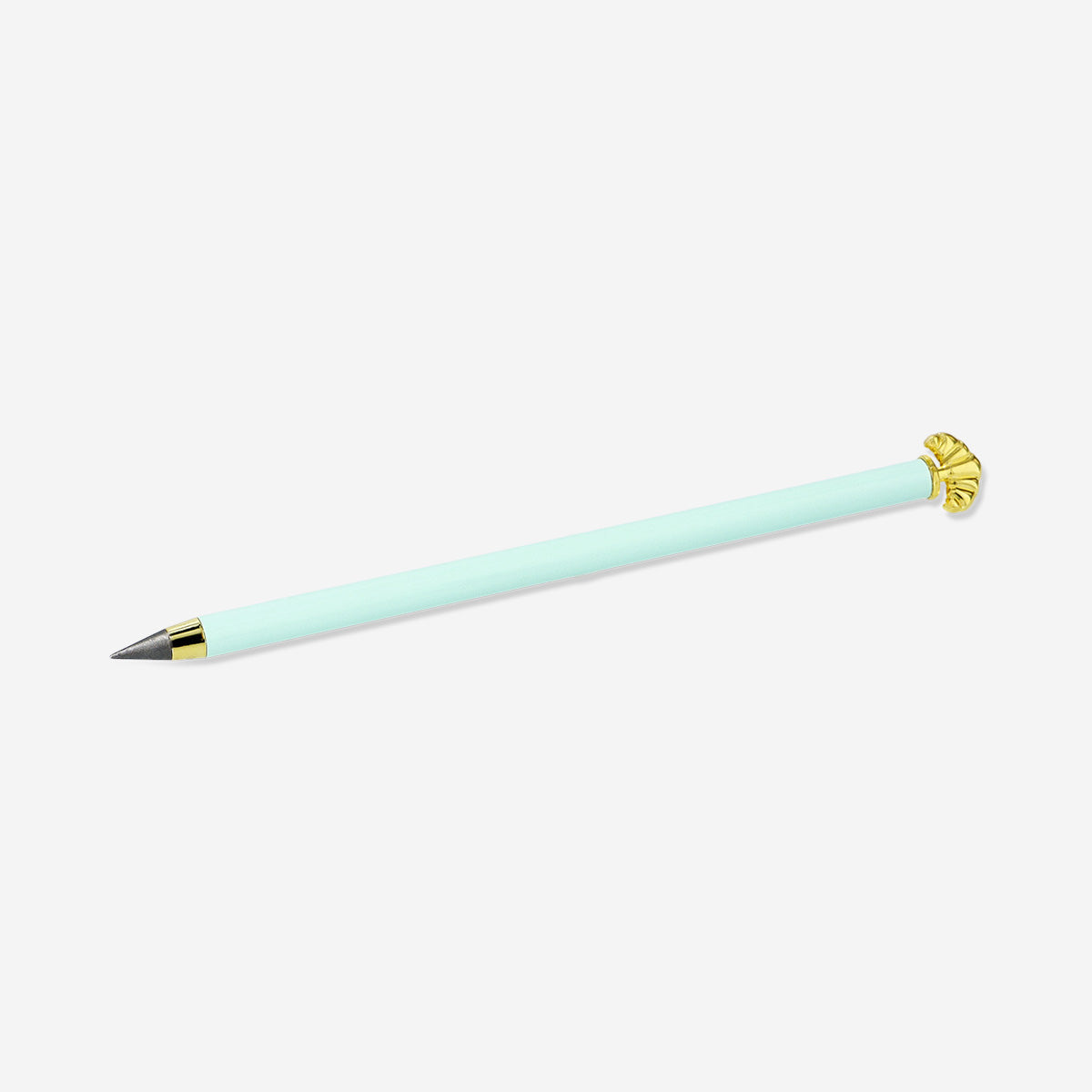 Altın Detaylı Turkuaz Kurşun Kalem yazma deneyimine neşeli ve sevimli bir zarafet katan şık tasarımıyla dikkat çeker. Turkuaz gövdesi ferah ve enerjik bir görünüm sunarken üzerindeki altın istiridye detayı kaleme tatlı ve özgün bir karakter kazandırır. Metal yapısı sayesinde dayanıklı bir kullanım sunan bu kalıcı kurşun kalem, keskinleştirmeye gerek kalmadan pürüzsüz ve pratik bir yazım deneyimi sağlar. Turkuaz kurşun kalem, altın detaylı kalem ve kalıcı metal kalem arayanlar için hem dekoratif hem de işlevsel bir alternatiftir.