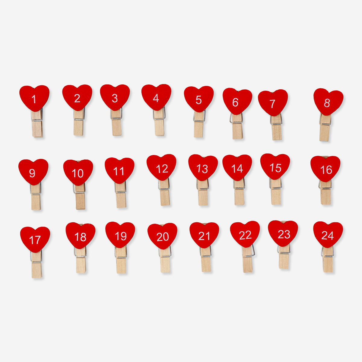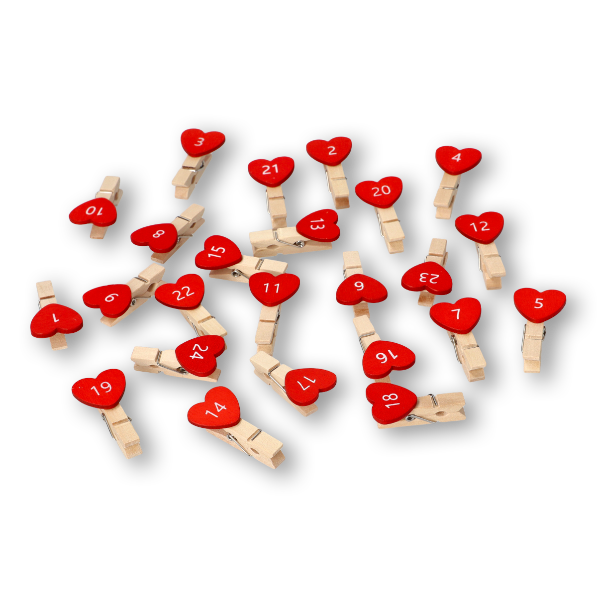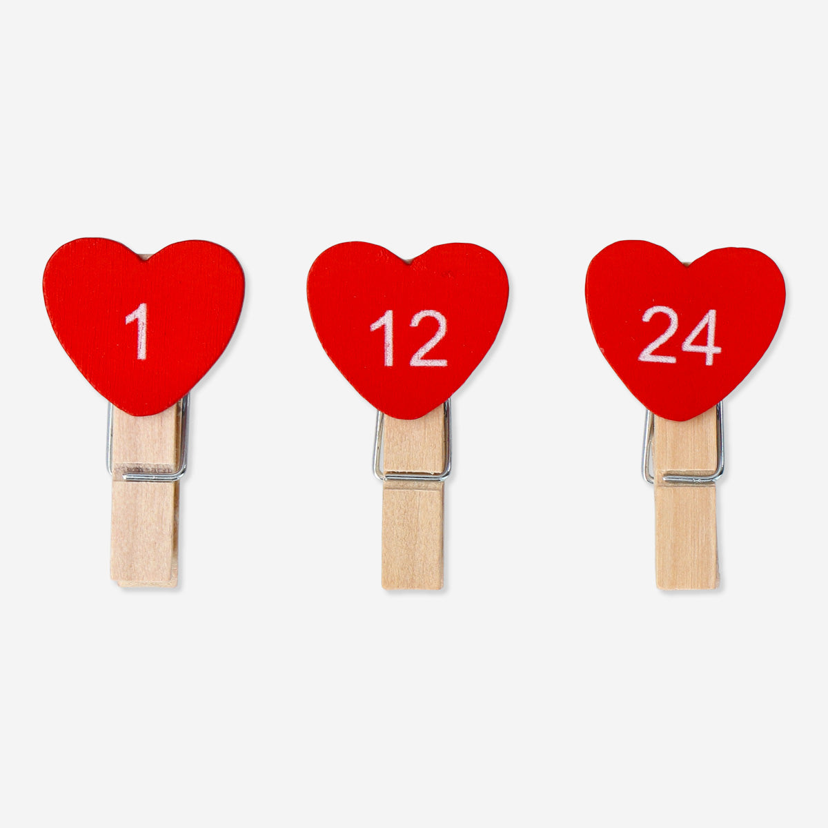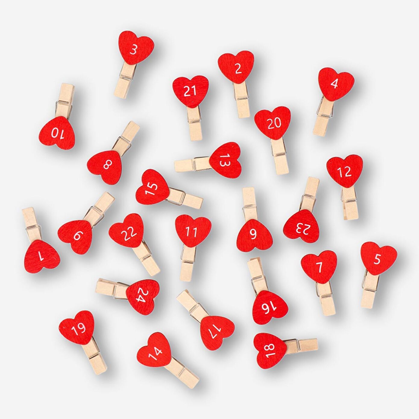 Flying Tiger Copenhagen 24'lü Kırmızı Kalpli Ahşap Mini Mandal Seti