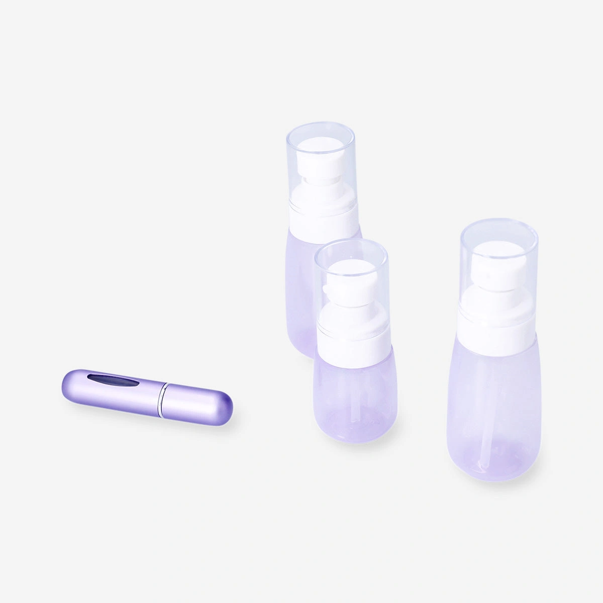 Çantalı Mor Seyahat Şişesi Seti, uyumlu mor tonlarıyla hem pratik hem de neşeli bir deneyim sunarak güzellik ürünlerinizi düzenli bir şekilde taşımanızı sağlar. Set, 30 ml ve 60 ml losyon şişeleri, 60 ml sprey şişesi ve 5 ml yeniden doldurulabilir parfüm kabı olmak üzere dört parçadan oluşur ve böylece temel bakım ürünlerinizi yanınızda götürmeyi kolaylaştırır. Tüm parçalar, şeffaf fermuarlı keseye rahatça sığar ve bu da onu el bagajında taşımak veya günlük kullanım için ideal hale getirir. Kompakt tasarımları sayesinde şişeler çantanızda az yer kaplar ve seyahat etmeyi daha düzenli ve keyifli hale getirir. Çantalı Mor Seyahat Şişesi Seti, yeniden doldurulabilir parfüm şişesi sayesinde gün içinde kolayca tazelenmenize imkân tanırken, diğer şişeler losyon, sprey ve bakım ürünlerinizi güvenle taşımanızı sağlar. Yumuşak mor dokunuşları, seti hem şık hem de eğlenceli bir aksesuar haline getirir. Hafif, dayanıklı ve kullanımı kolay olan bu set, kısa gezilerden günlük çanta kullanımına kadar pek çok durumda işlevsellik sunar. Güzellik rutininizi yanınızda taşımak istediğiniz her an, bu set size düzen, pratiklik ve zarif bir seyahat deneyimi kazandırır. Hacim: 30 ml, 60 ml, 5 ml