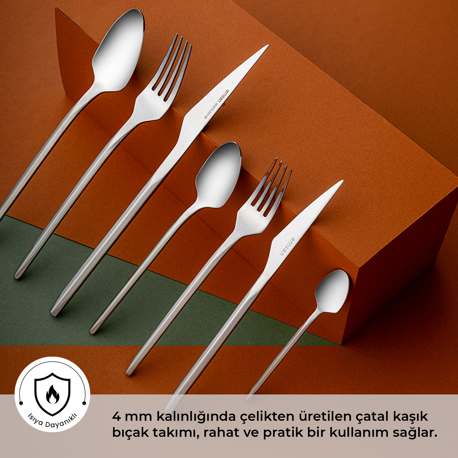Uzun süre parlaklığını koruyan özel Emsan çeliğinden üretilmiştir.
