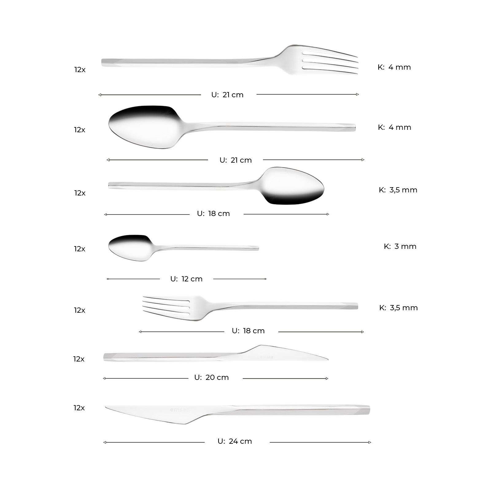 - 12 Adet Yemek Kaşığı (21 cm) 4mm