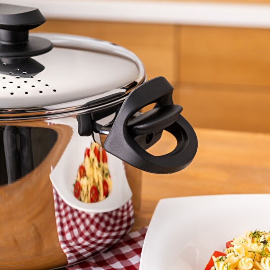 - Yan kulpları ve tencere kapak kulpu yanmaz ve yapışmaz kaplamadır.
