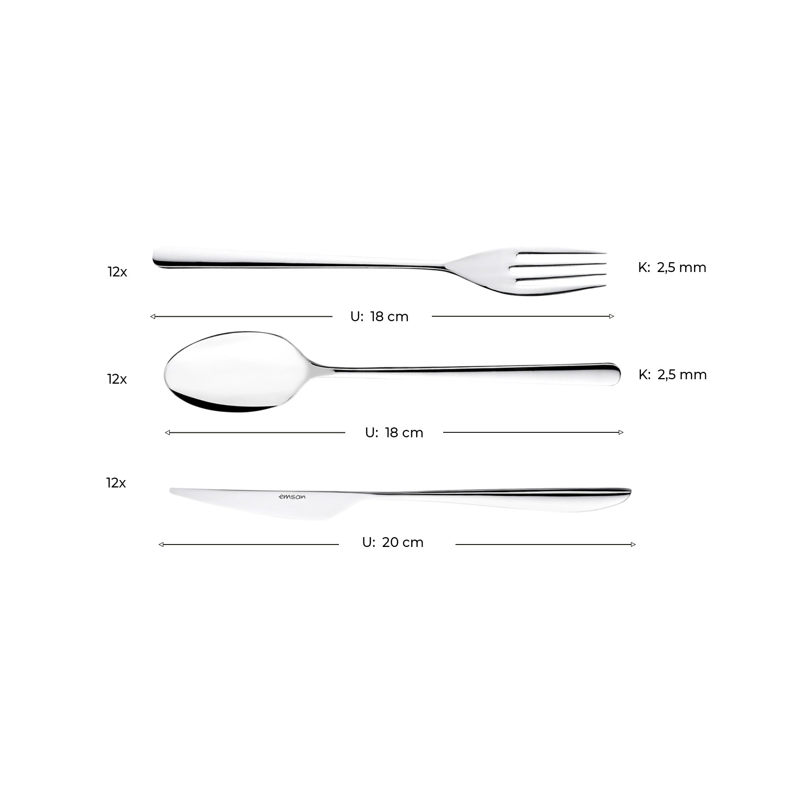 Emsan Bello 18 Parça 6 Kişilik Tatlı Çatal Kaşık Bıçak Takımı