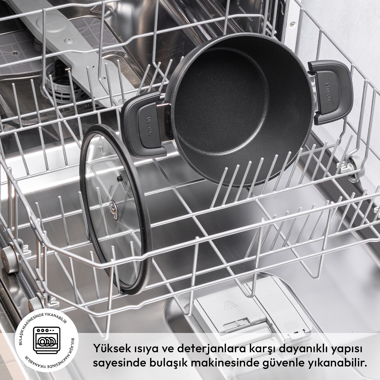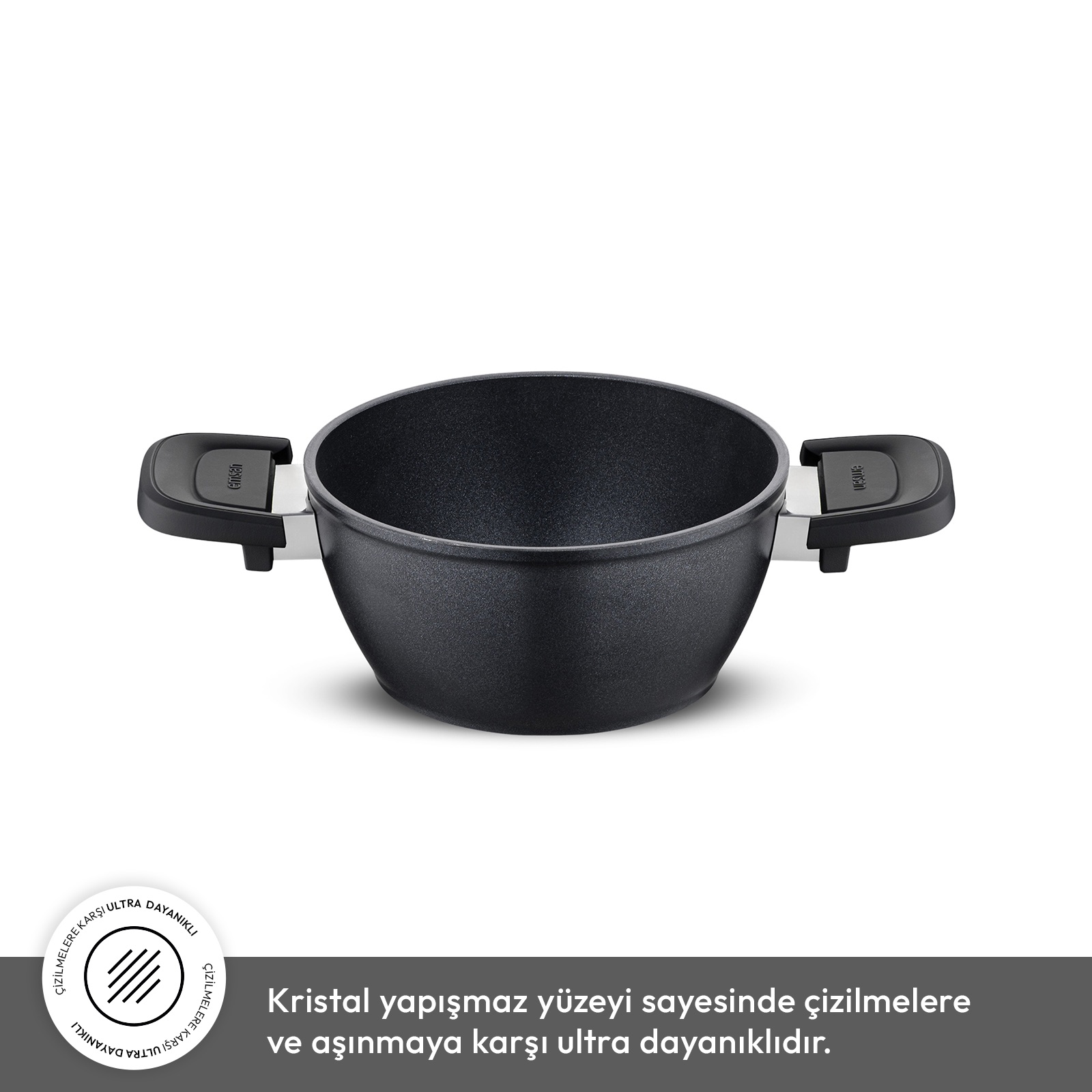 Emsan Diamente, gücünü ve sağlamlığını doğanın en dayanıklı harikası gerçek elmas kristallerinden alır. Ultra dayanıklılık ve çizilmezlik özelliği sayesinde metal mutfak gereçleri ile de güvenle kullanılabilir. Üstün yanmaz yapışmaz yüzeyi ile et, balık, yumurta ve sebzeleri yağ kullanmadan sağlıklı bir şekilde pişirmeye olanak sunar. Isıyı her tarafa eşit olarak dağıtması sayesinde yemeklerin daha lezzetli pişmesini sağlar