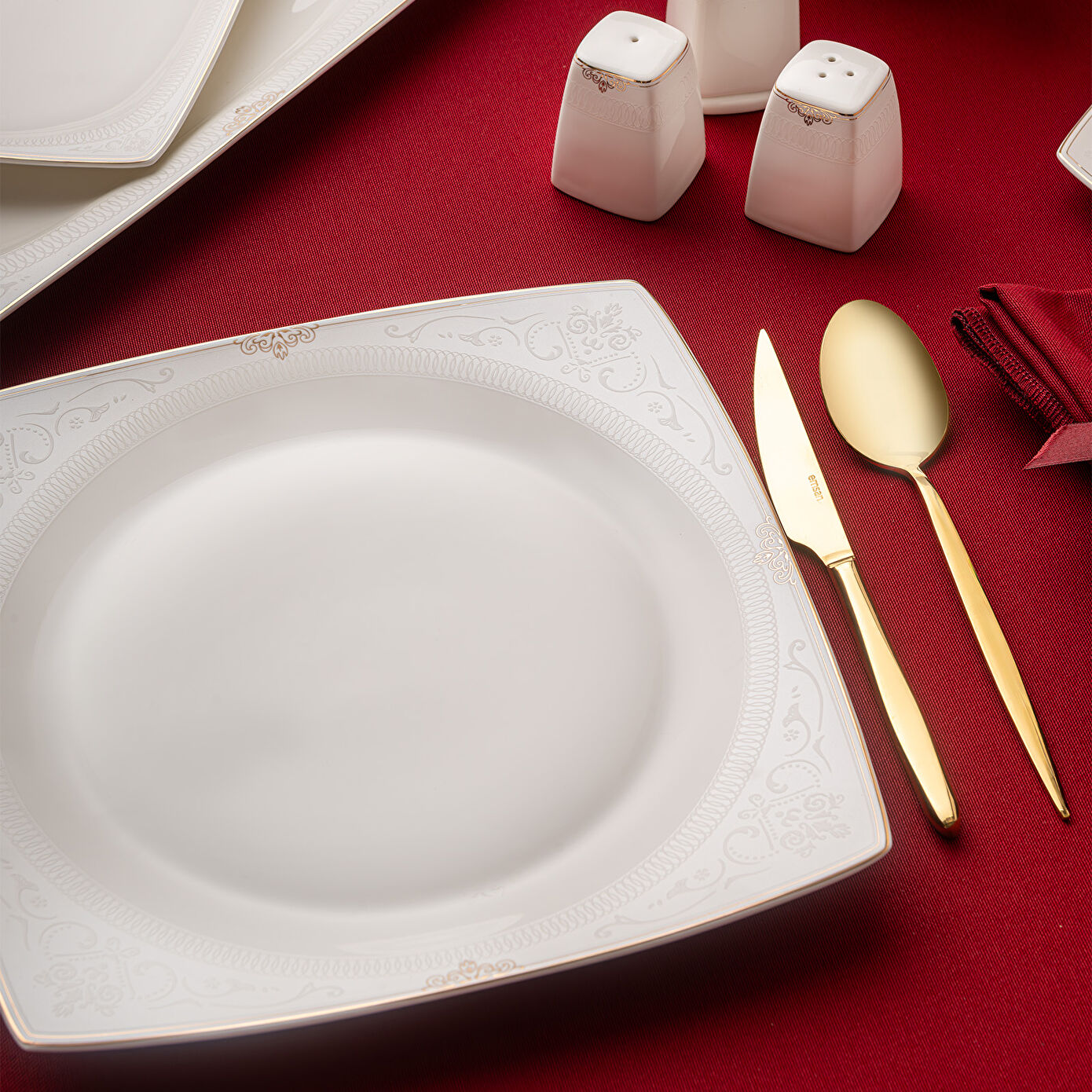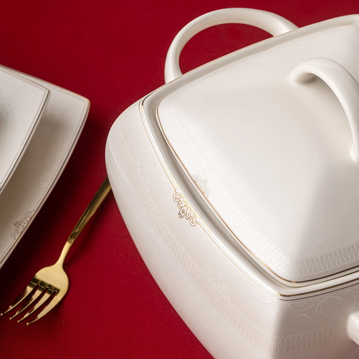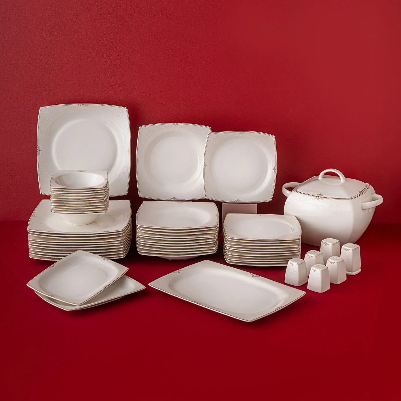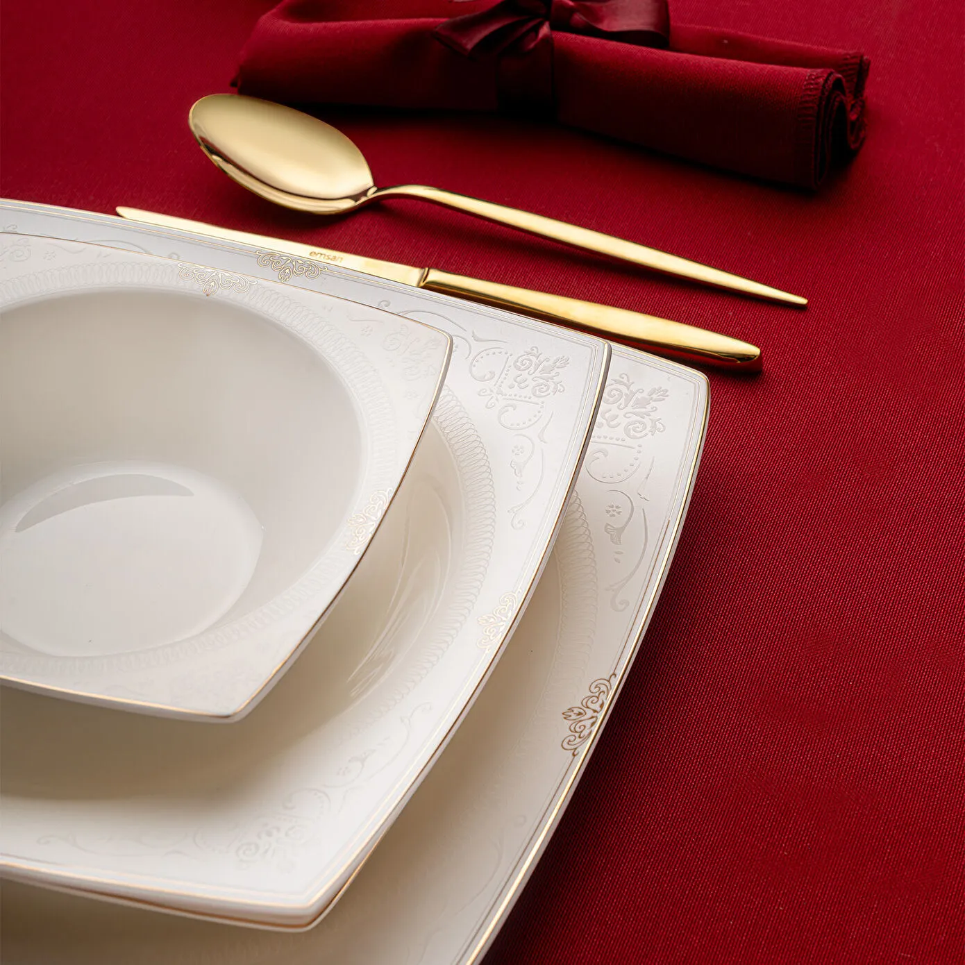 Emsan Fine Bone Estiva Gold 61 Parça 12 Kişilik Kare Yemek Takımı