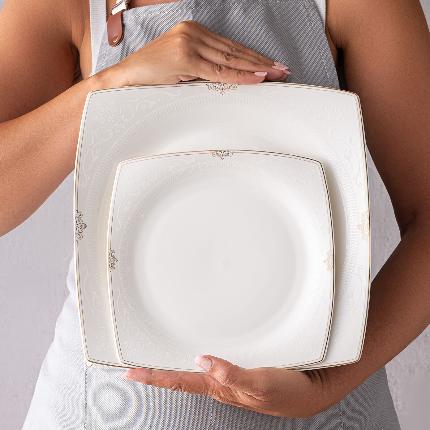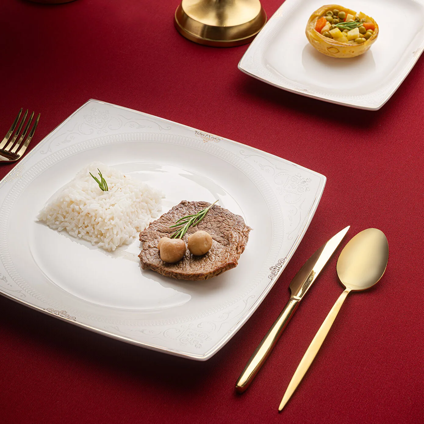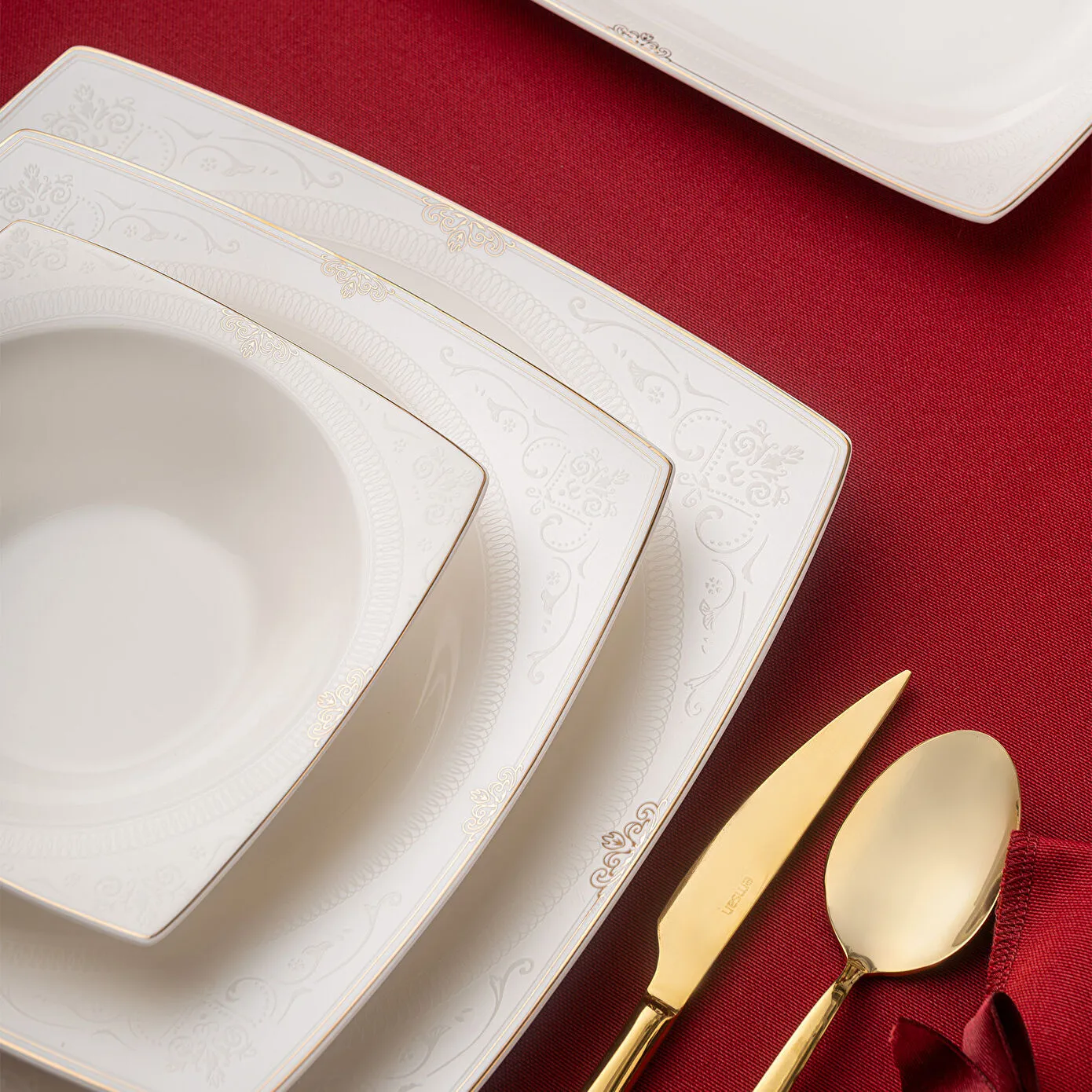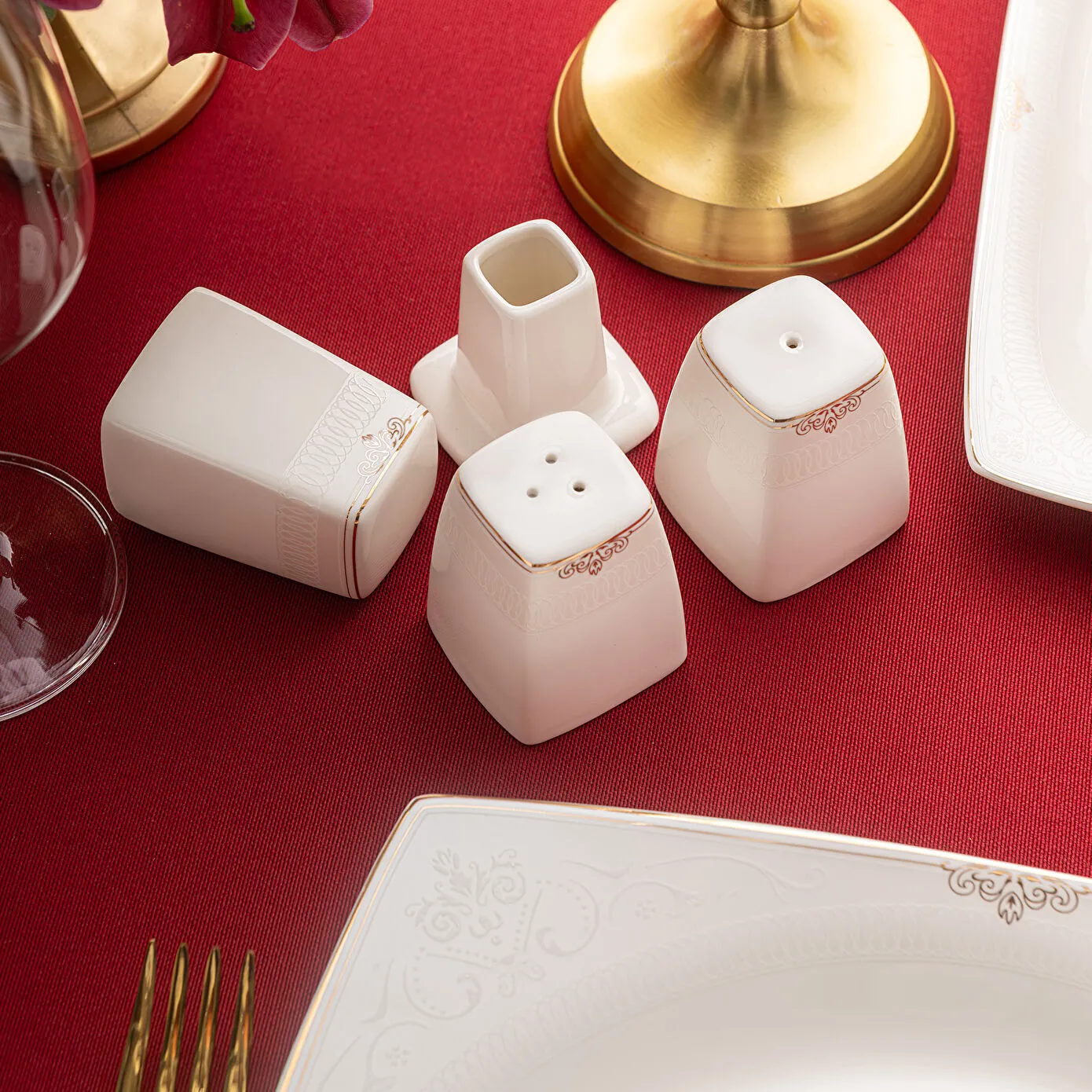 Emsan Fine Bone Estiva Gold 61 Parça 12 Kişilik Kare Yemek Takımı