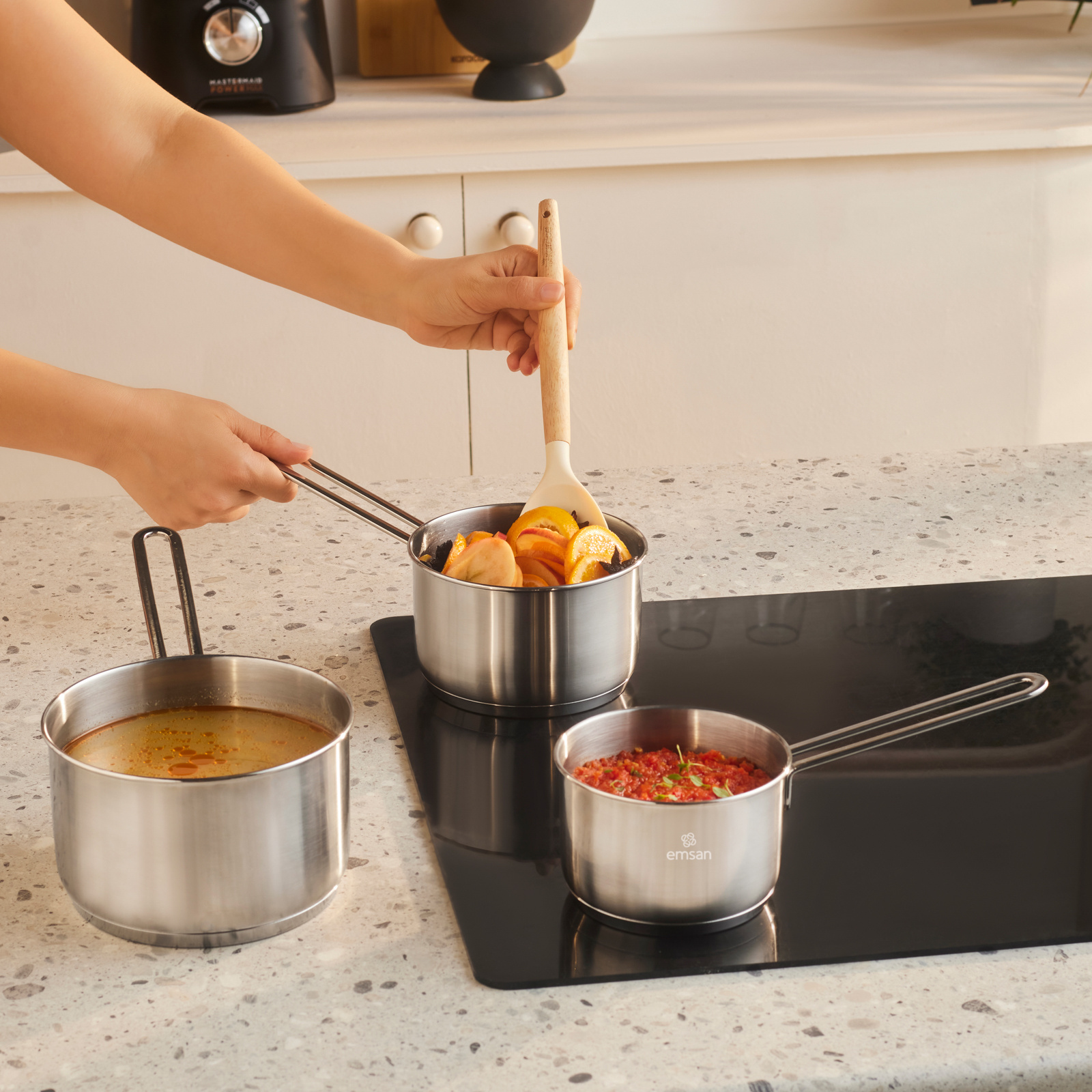 Emsan Fiorino İndüksiyon Tabanlı Çelik 3 Parça Mini Sütlük/Sosluk Set