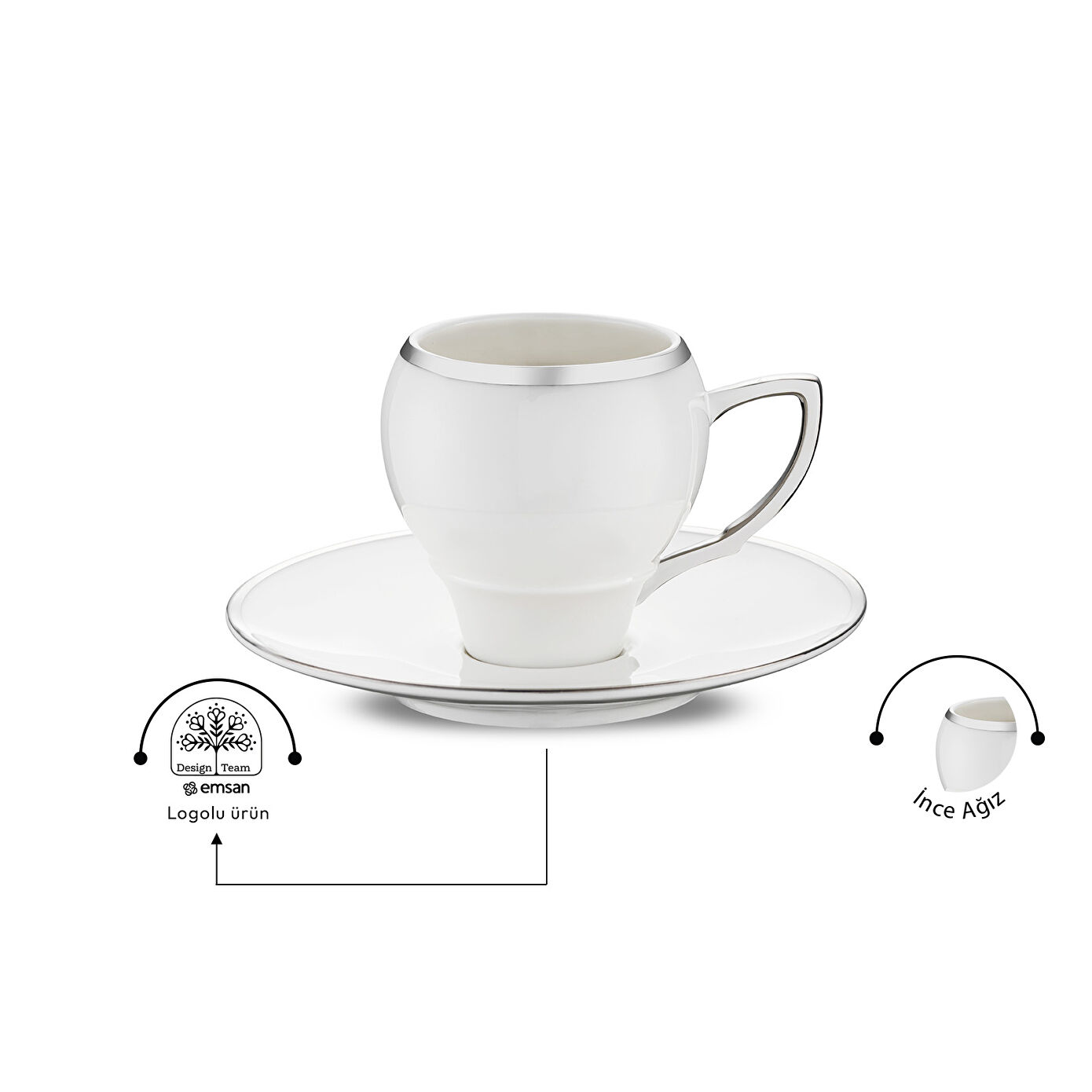 Emsan Florea 6'lı Kahve Fincan Takımı Platin 90 ml