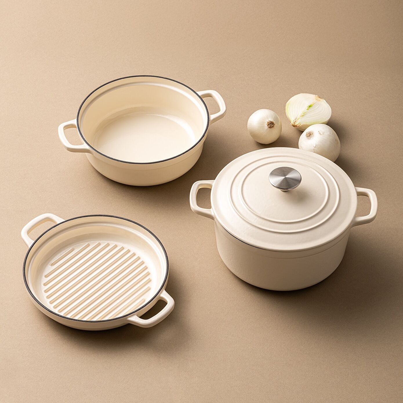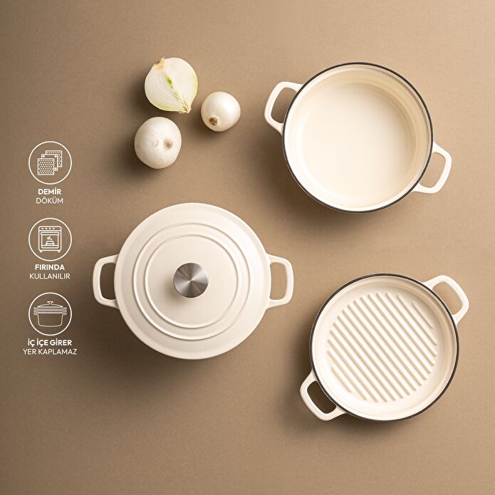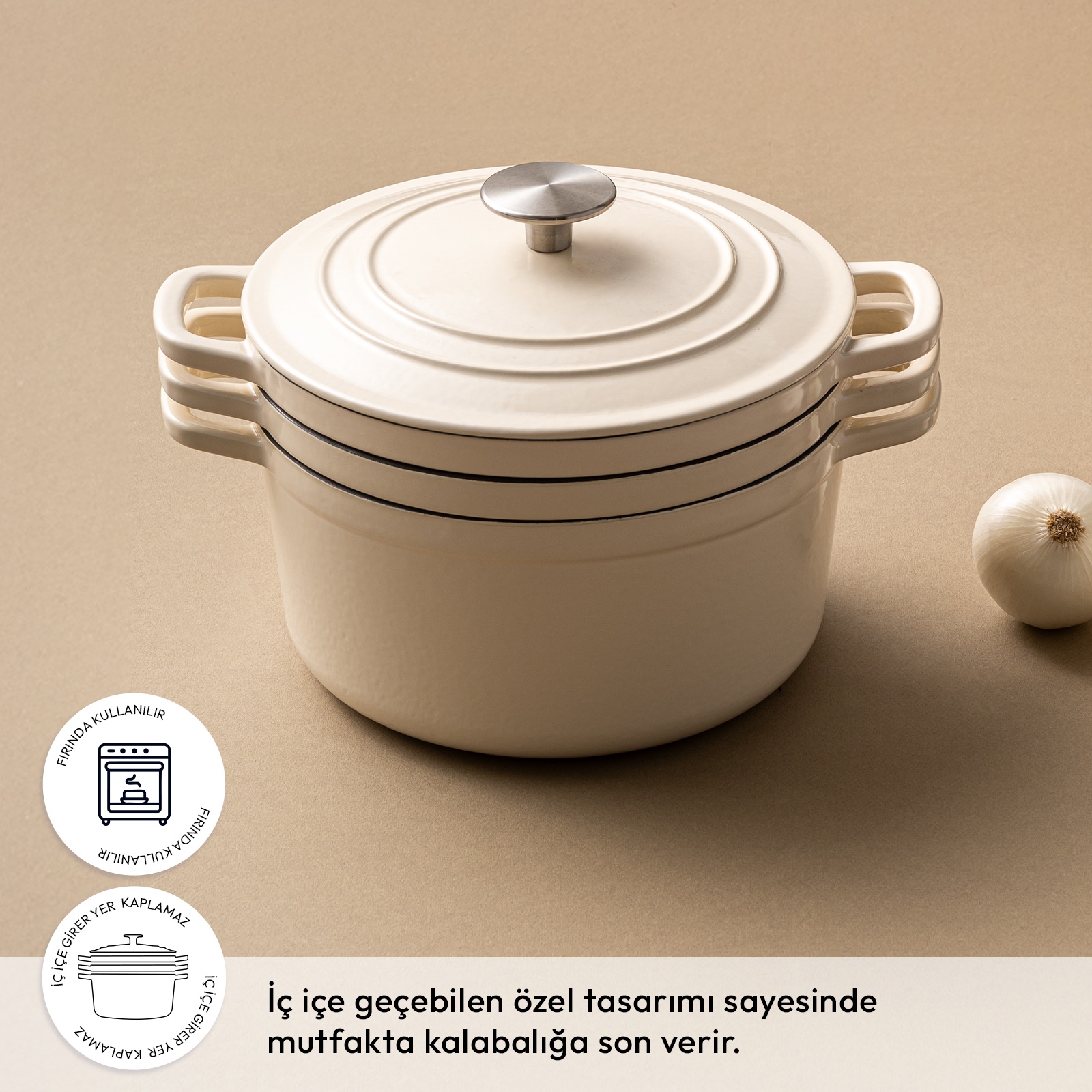 Emsan Fortino Cast Döküm Tencere Seti Krem 4 Parça 22 cm