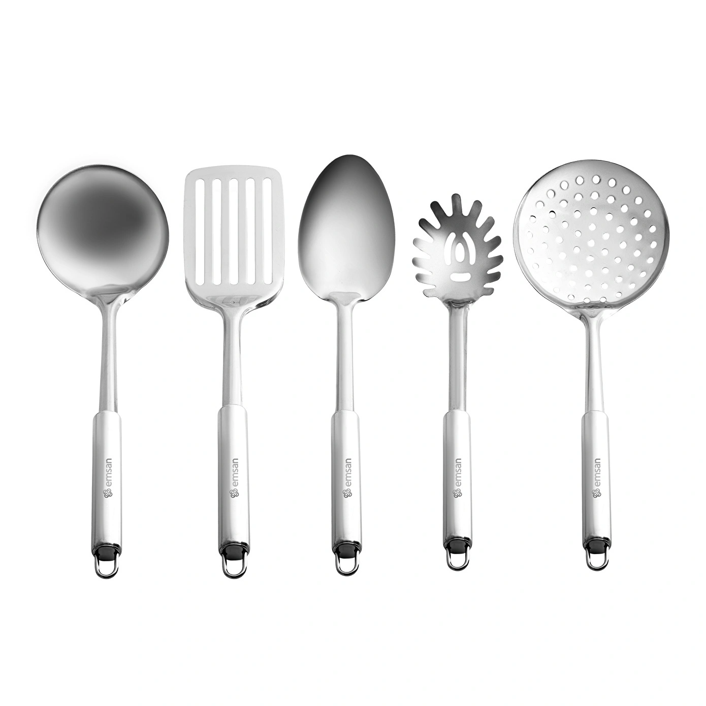 Servis kısmında ise setin kepçe, kevgir, delikli spatula, servis kaşığı ve