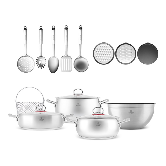 Emsan Karıştır-Pişir-Sakla 18 Parça Karıştırma Kabı ve Servis Gereçli Çelik Tencere