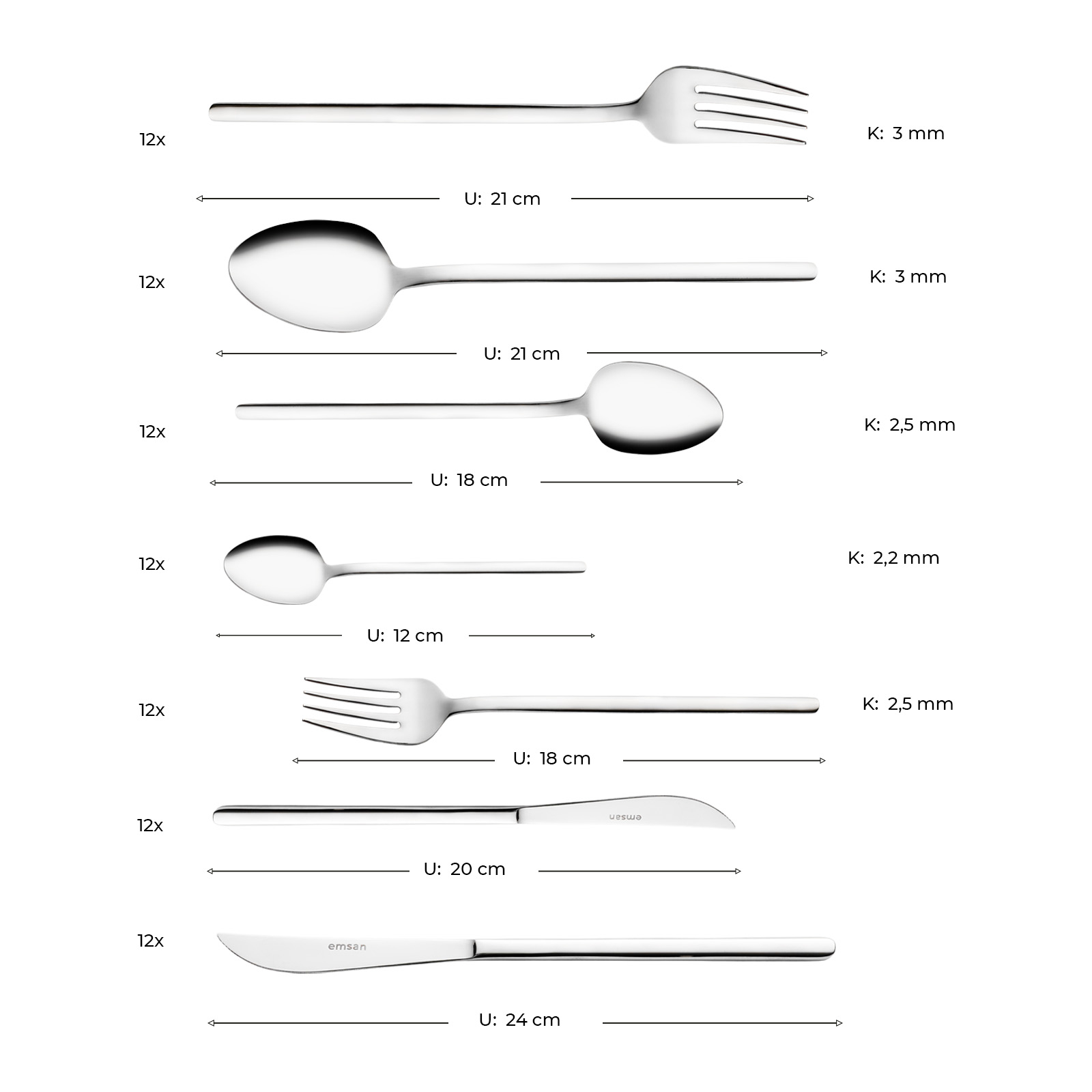 Emsan Lora 84 Parça 12 Kişilik Kutulu Çatal Kaşık Bıçak Takımı