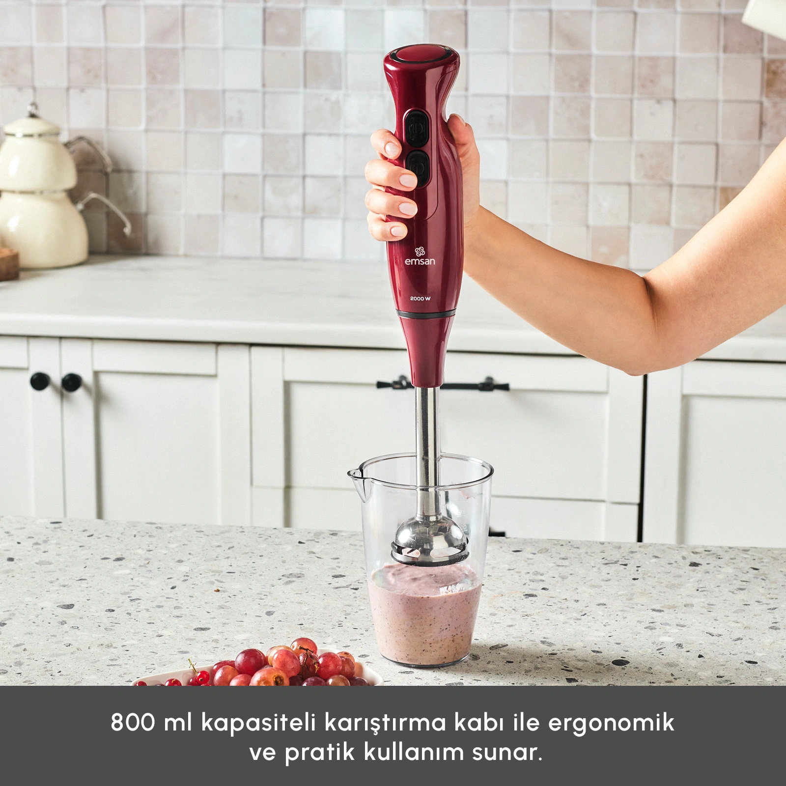 - 800 ml kapasiteli karıştırma kabı ile sebze ve meyveleri kolayca ezerek, püre, ayran vb. karışımları kolaylıkla hazırlayabilirsiniz.