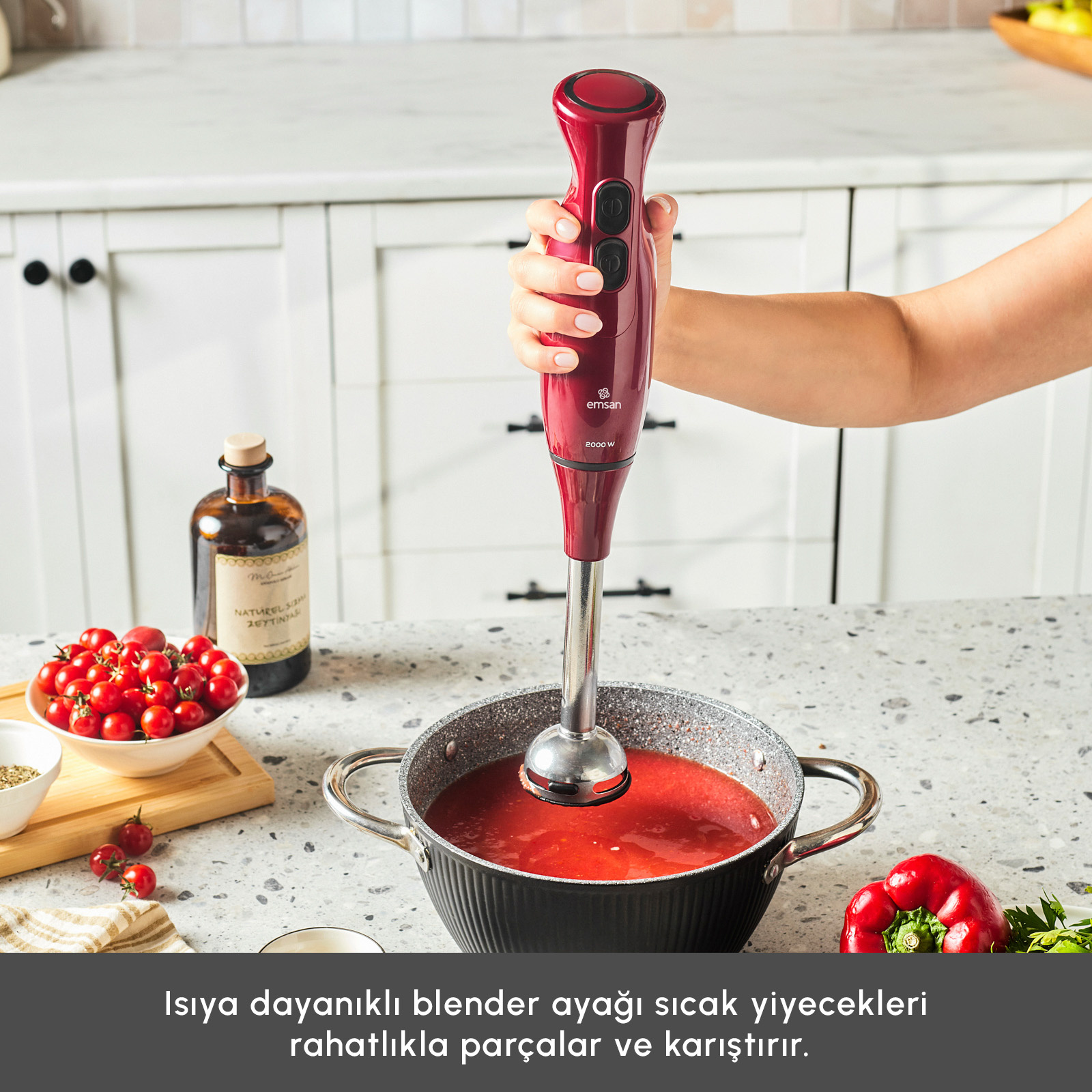 - Paslanmaz çelik blender ayağı ısıya dayanıklıdır, bu sayede çorba vb. sıcak yiyecekleri rahatlıkla hazırlayabilirsiniz.