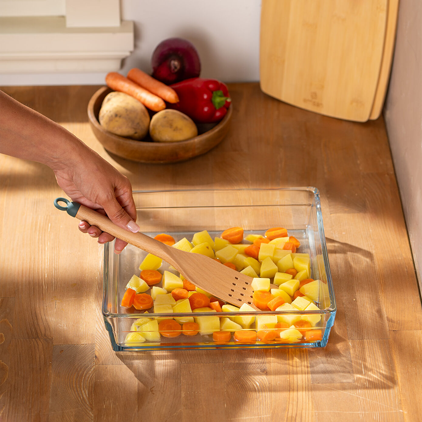 Özellikle yanmaz yapışmaz yüzeyli tencere ve tavalarla kullanıma uygundur. Metal gereçlerdeki çizme riskini ortadan kaldırır.