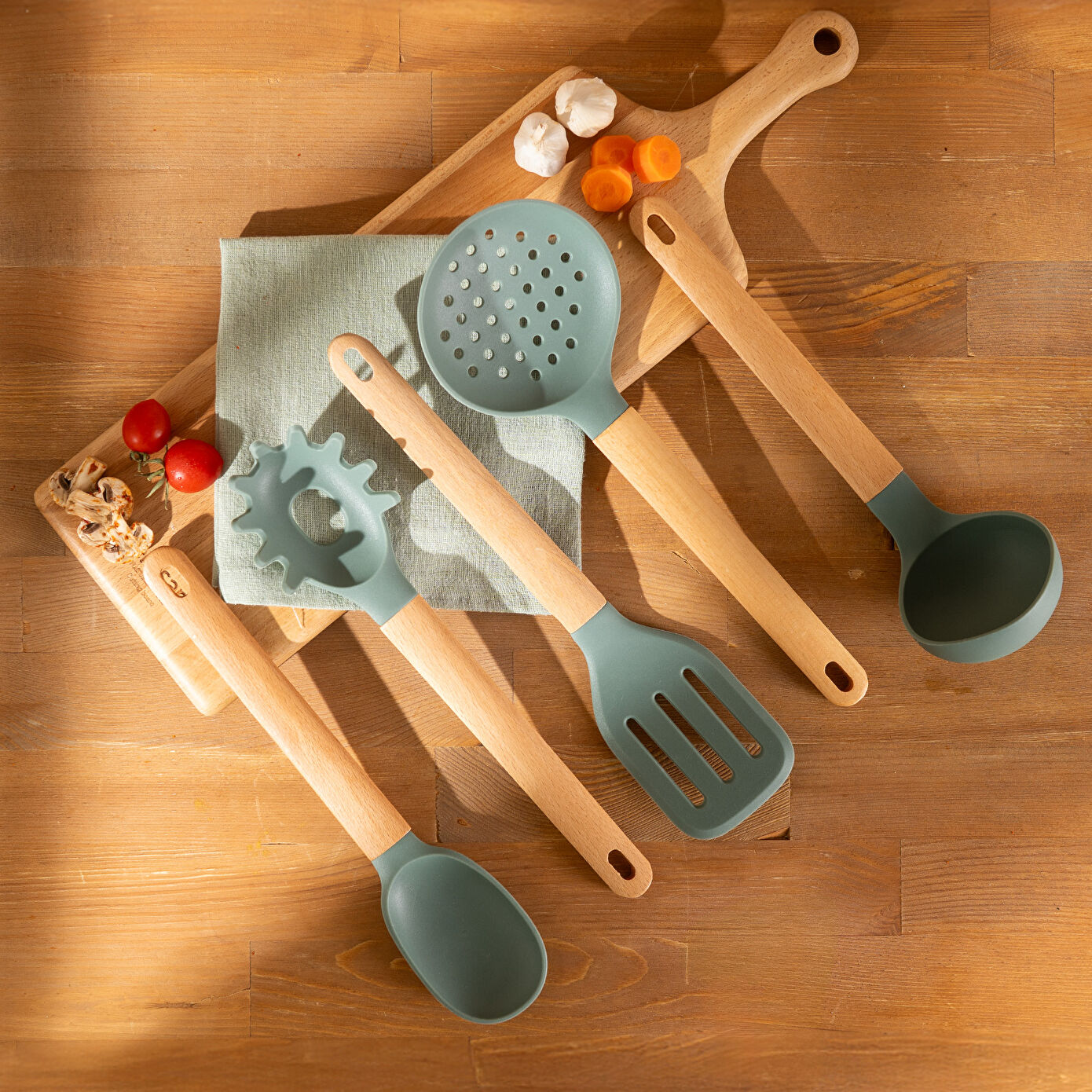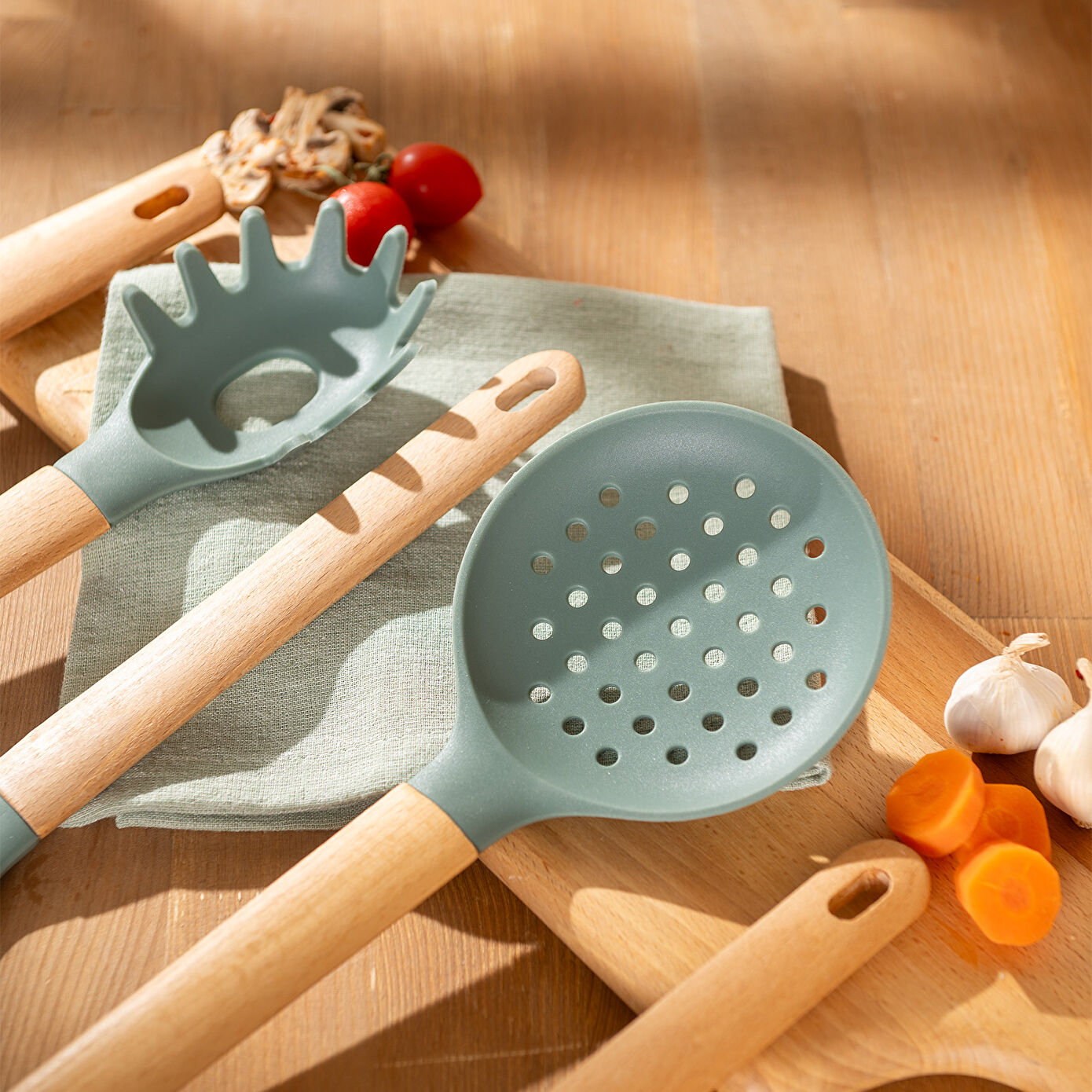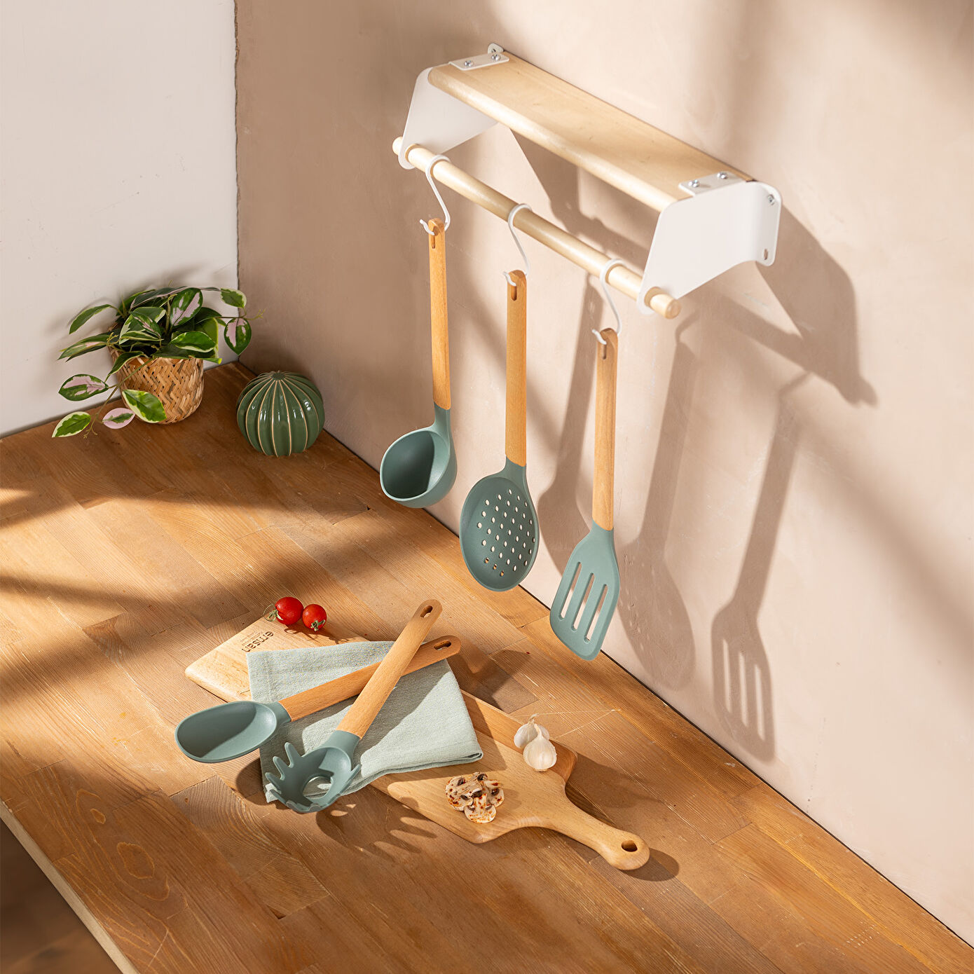 Özellikle yanmaz yapışmaz yüzeyli tencere ve tavalarla kullanıma uygundur. Metal gereçlerdeki çizme riskini ortadan kaldırır.