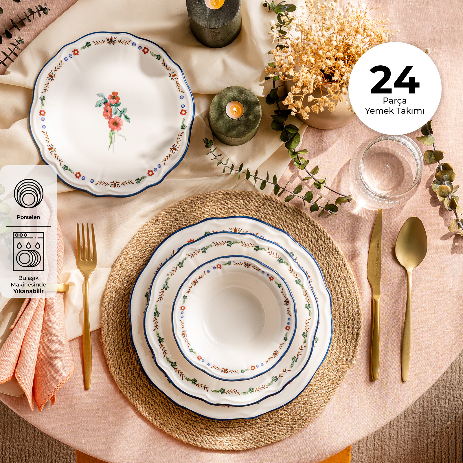 Emsan Rüya Porselen 24 Parça 6 Kişilik Yemek Takımı