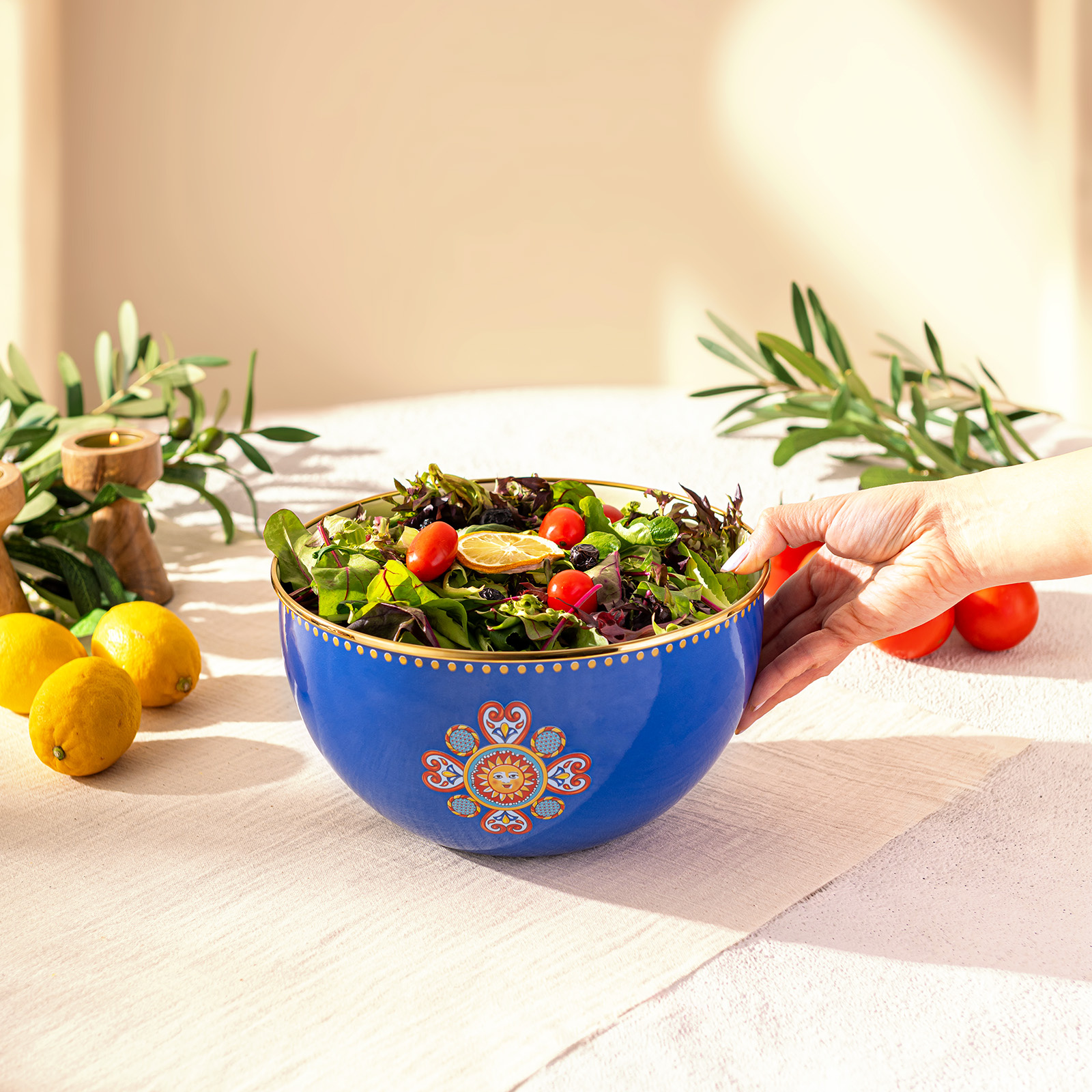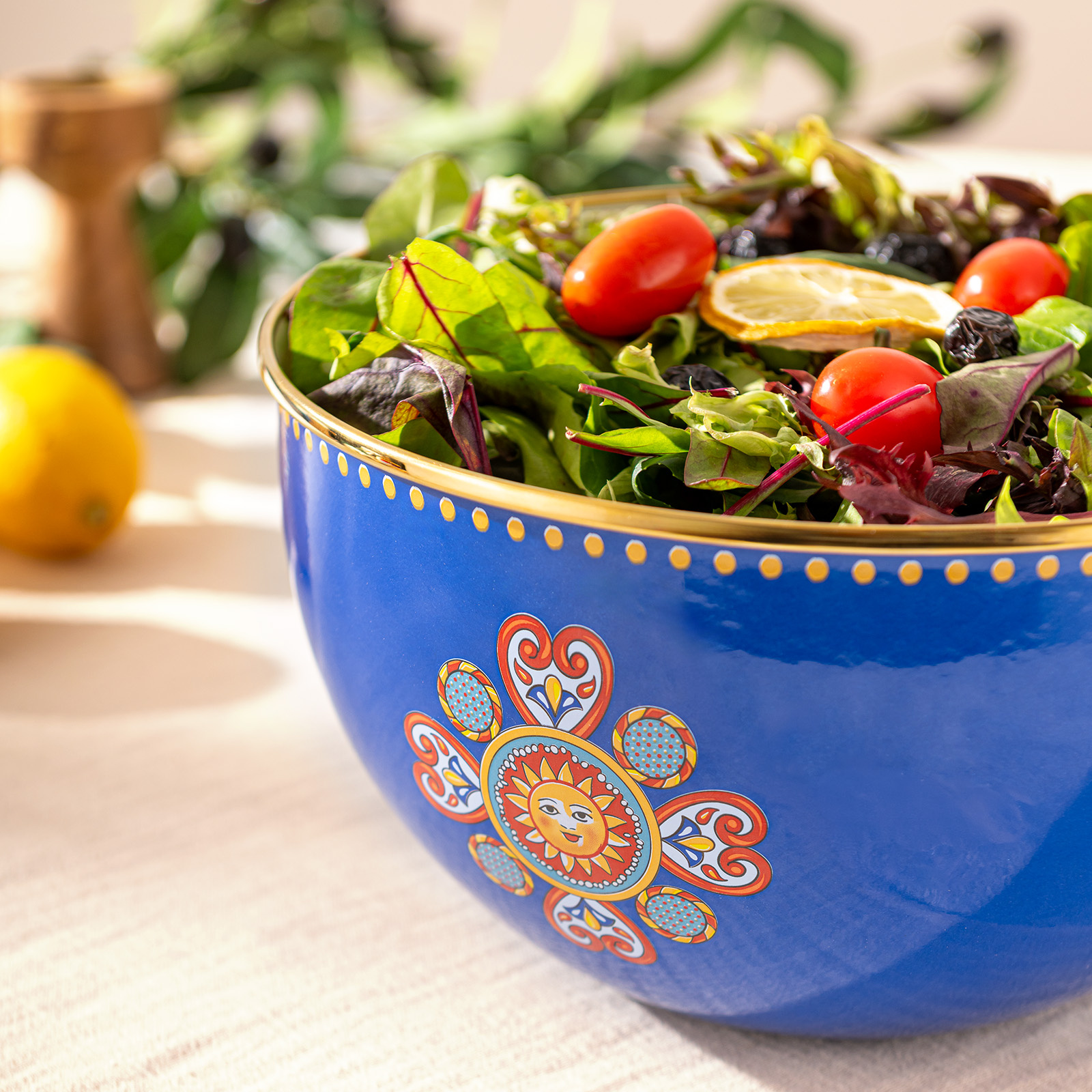 Yazın en parlak anlarından ilham alan Solemar, sofralara sıcak, canlı ve zamansız bir dokunuş getirir. Güneşin altın sarısı ışıltısını yansıtan motifleri; bereketi ve paylaşımı simgelerken, dingin mavi tonlar denizin huzurunu sofranıza taşır. Kırmızı detaylar ise yazın enerjisini ve neşesini her an hissettirir.