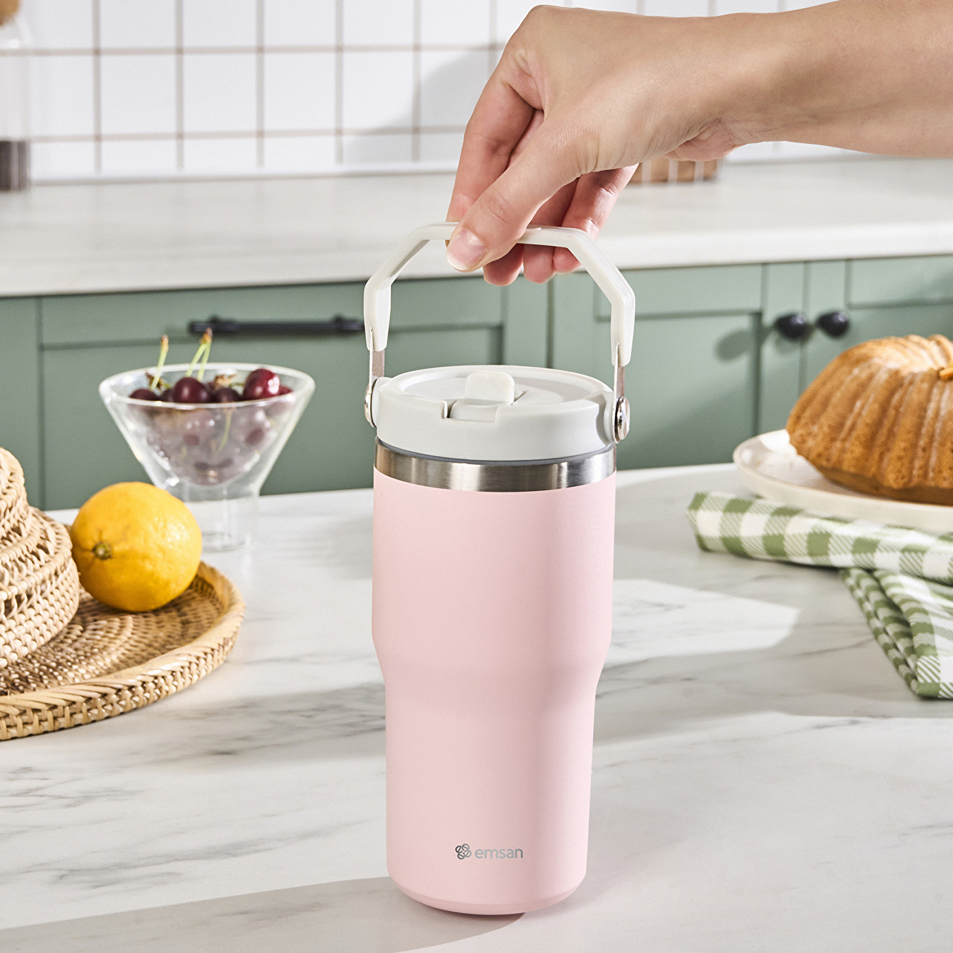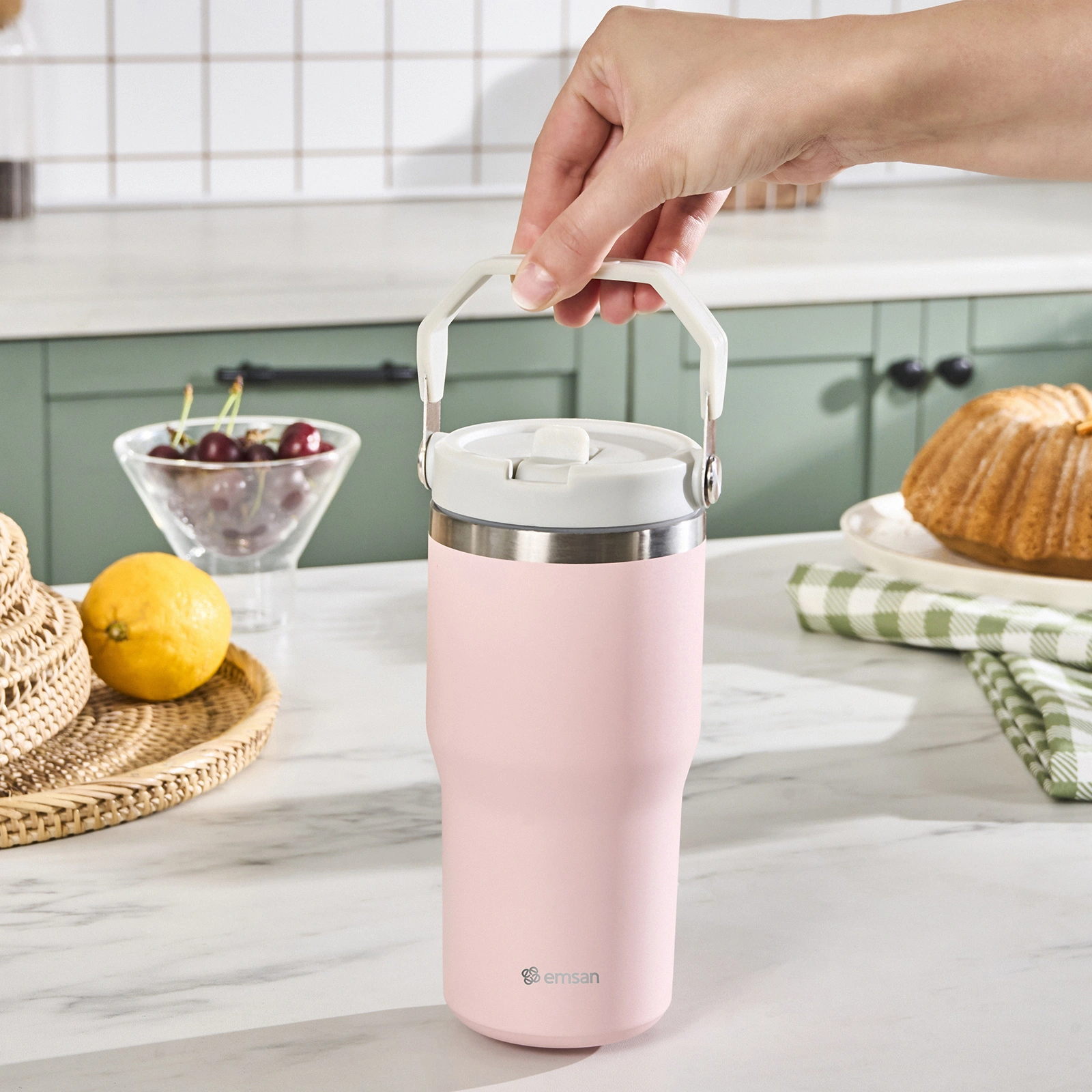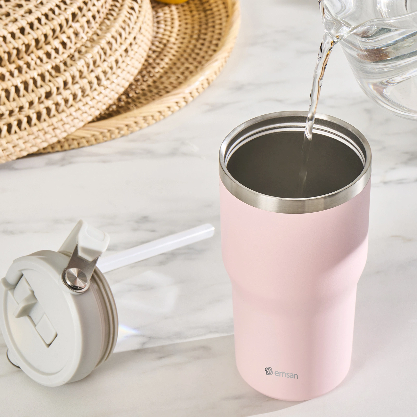 Emsan Star Ice Pipetli Çelik Sızdırmaz Termos Pembe 550 ml