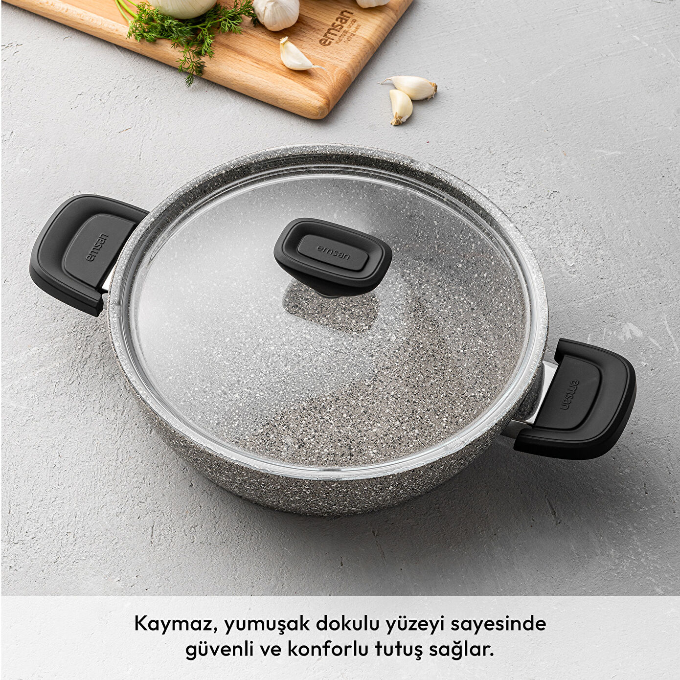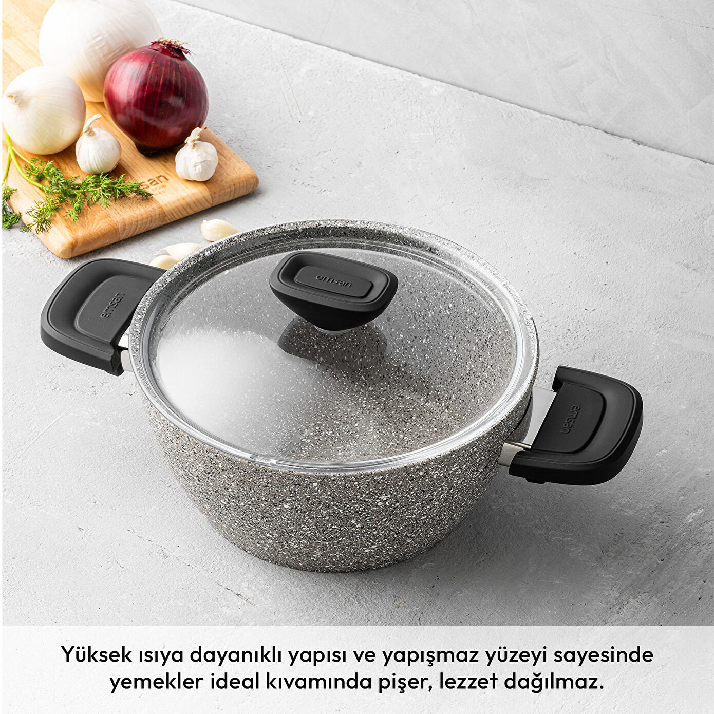 Emsan Stone 7 Parça Tencere Seti ile mutfağınızda her öğün mükemmel lezzeti yakalayın. Maksimum yanmaz yapışmazlık sağlayan granit kaplaması, yemeklerinizin her seferinde ideal kıvamda pişmesini sağlar. Özel iç yüzey sayesinde yiyecekler tencereye yapışmaz, temizlik rahat ve hızlıdır. Leke tutmayan dış yüzeyi ile uzun ömürlü kullanım sunar ve bulaşık makinesinde yıkanabilir. Çizilmelere karşı dayanıklı yapısı sayesinde set, günlük kullanıma uygundur ve uzun ömürlü performans sağlar.
