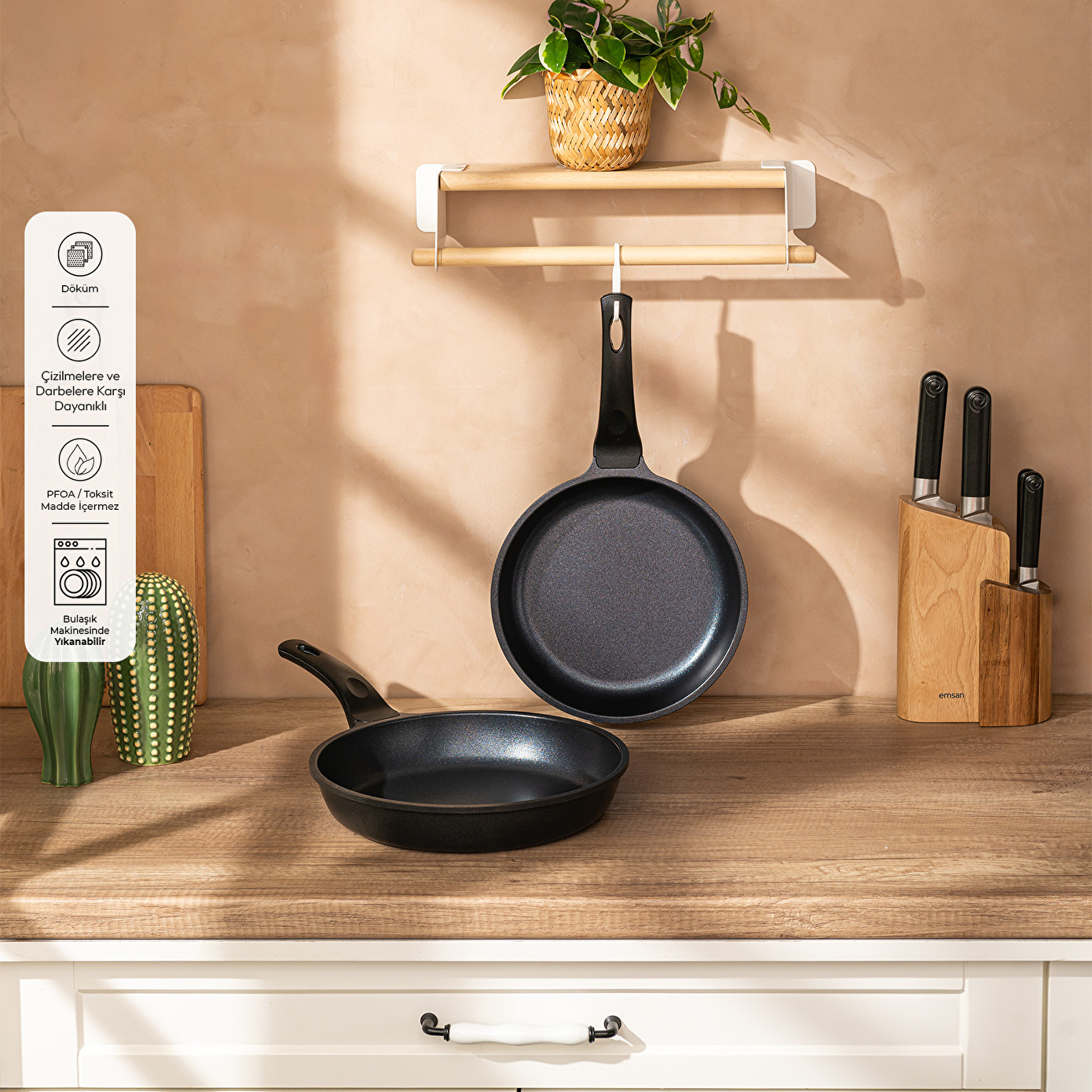 Emsan Stone Alüminyum Döküm 2’li Tava Seti Siyah
