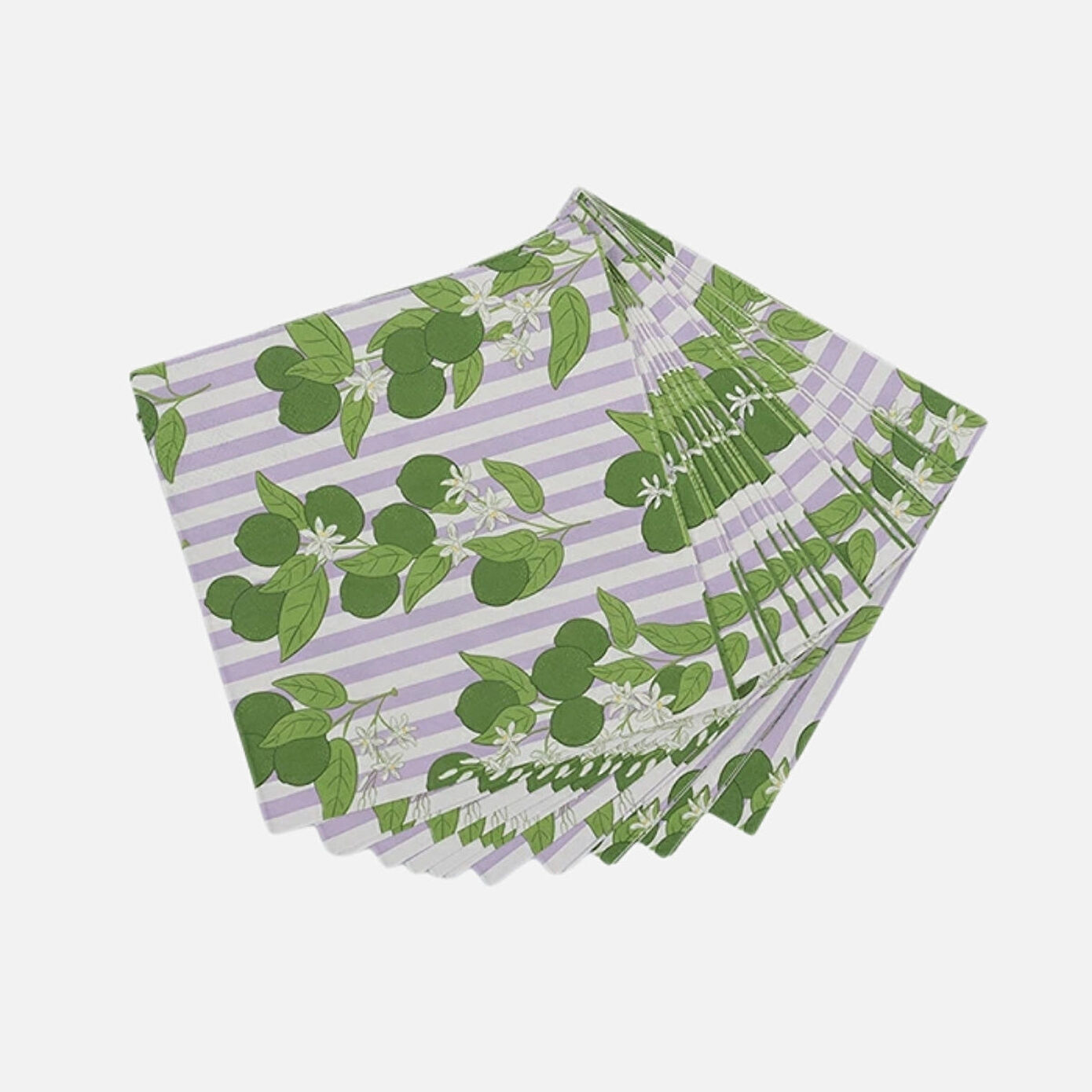 16'lı Çizgili Lime Desenli Kağıt Peçete, sofralarınıza ferahlatıcı bir dokunuş katar. Her peçete, taze lime desenleriyle süslenmiş olup, çizgili tasarımıyla modern bir hava yaratır. Yüksek kaliteli kağıt malzemesi ve yumuşak dokusu sayesinde hem şık hem de rahat bir kullanım sunar.