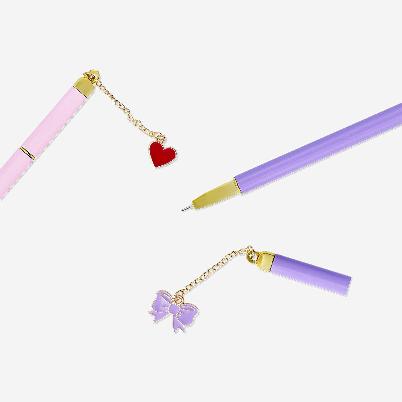 2'li Süs Detaylı Tükenmez Kalem seti, yazma deneyiminizi şık ve eğlenceli hale getirir. Her biri zarif bir kalp ve fiyonk süslemeyle detaylandırılmış olan bu kalemler, 0,8 x 16,3 cm boyutlarında metalden üretilmiştir. İnce bir zincirden sarkan süslemeleri, bu kalemlere tatlı ve şık bir dokunuş katar.