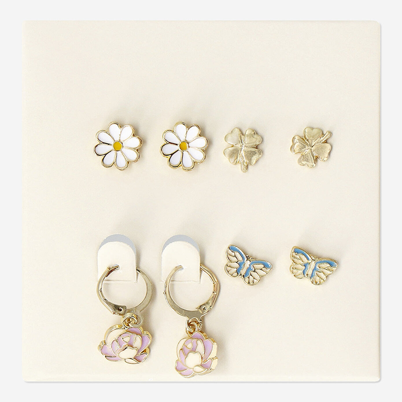 4'lü Bahar Temalı Küpe Seti, baharın taptaze havasını stilinize yansıtan zarif bir mücevher koleksiyonudur. Çıtçıt ve halka olmak üzere dört farklı tasarıma sahip olan bu set, metal malzemeden üretilmiştir ve 1,1 x 1,1 x 0,1 cm ölçülerinde olup hafifliğiyle günlük kullanımda büyük bir rahatlık sunar. Bahar temalı zarif tasarımları, her kıyafeti tamamlayarak kişisel tarzınızı ifade etmenize olanak tanır.