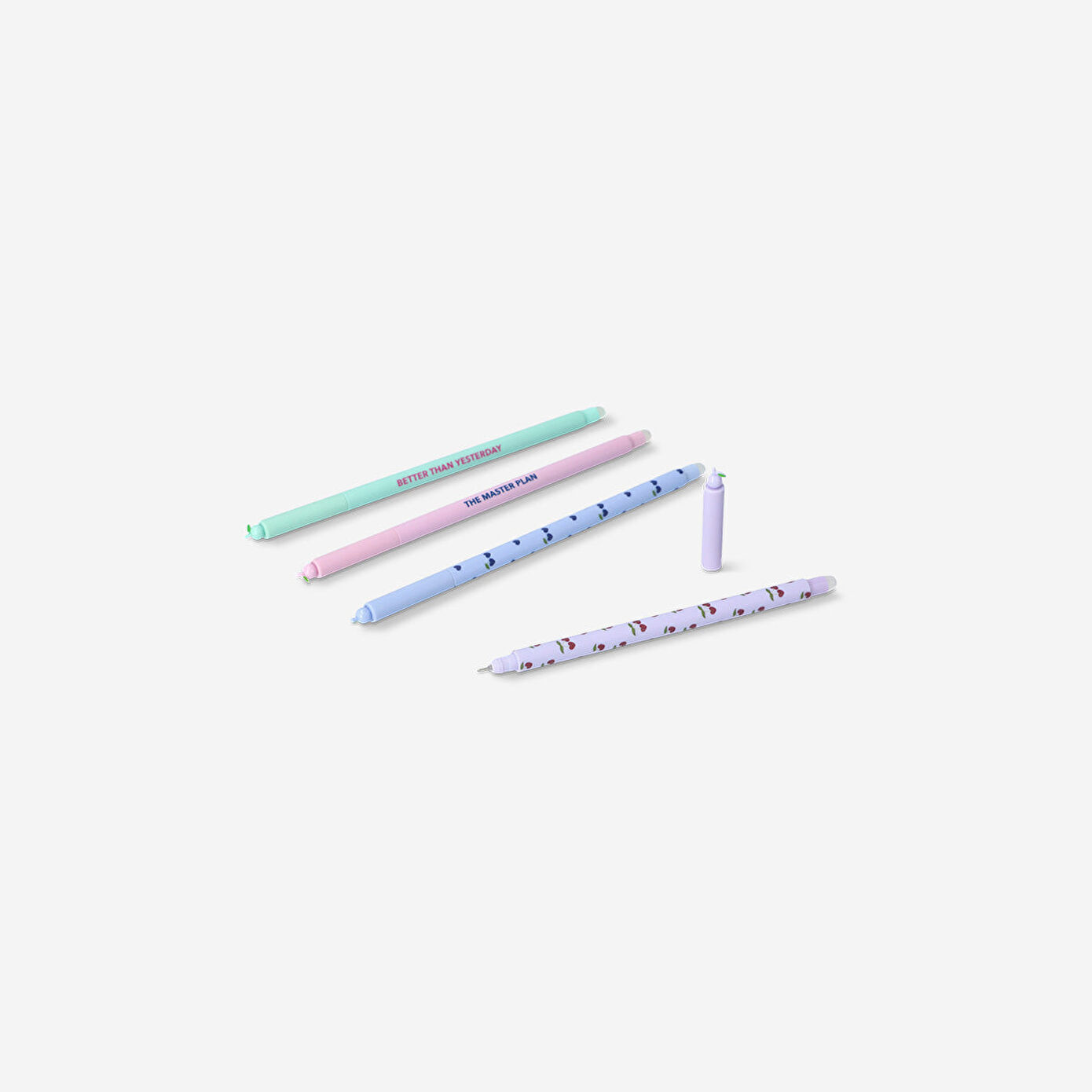 Eğlenceli, motive edici mesajlar ve renkli tasarımlar, bu kalemleri okullarda veya ofiste kullanmak için mükemmel kılar. Hem pratiklik hem de stil açısından zengin olan 4'lü Silinebilir Jel Tükenmez Kalem, kırtasiye koleksiyonunuza şıklık katarken, her yazma deneyimini eğlenceli ve verimli hale getirir. İster öğrenciler, ister profesyoneller için ideal olan bu set, çalışma alanınızı hem düzenler hem de kişiselleştirir.