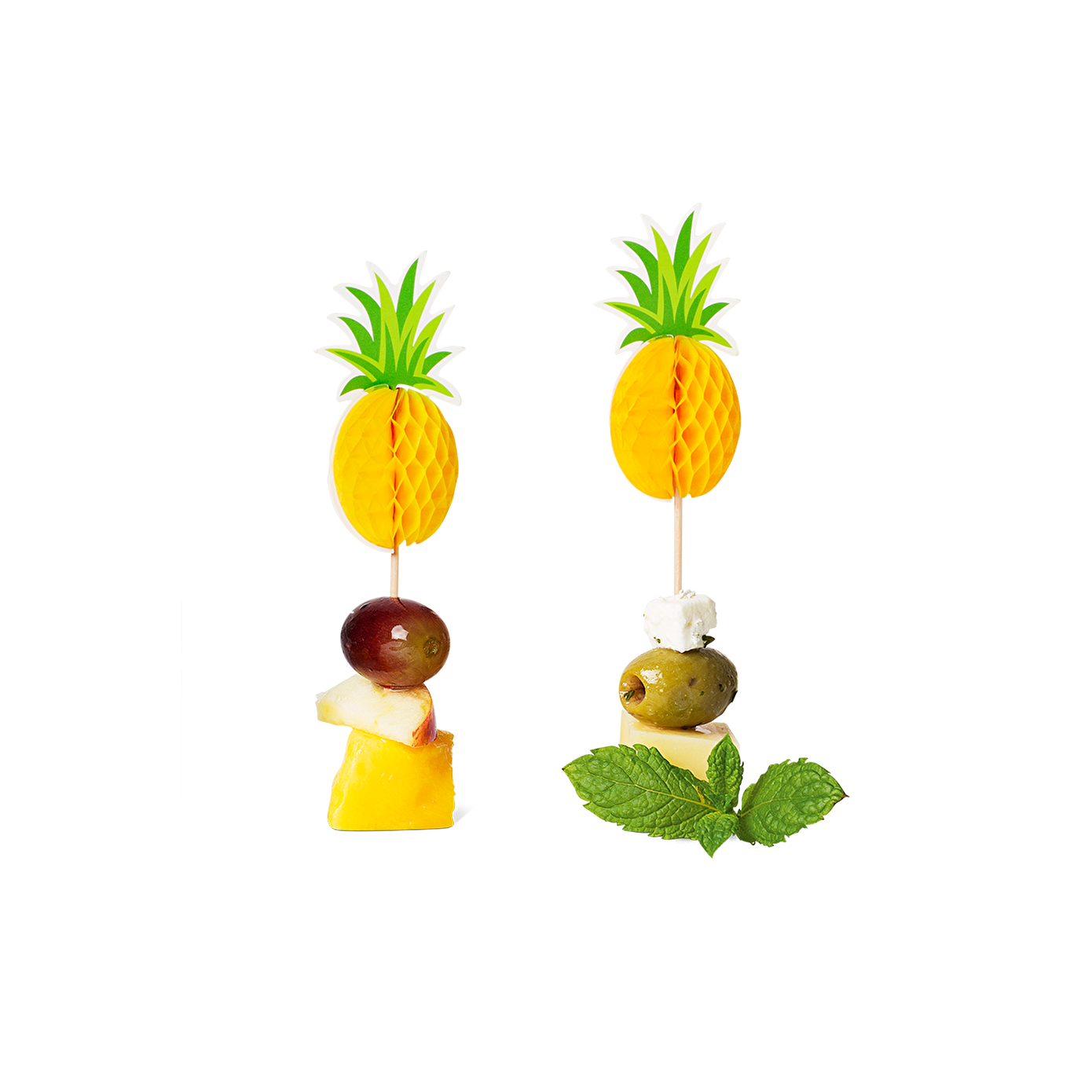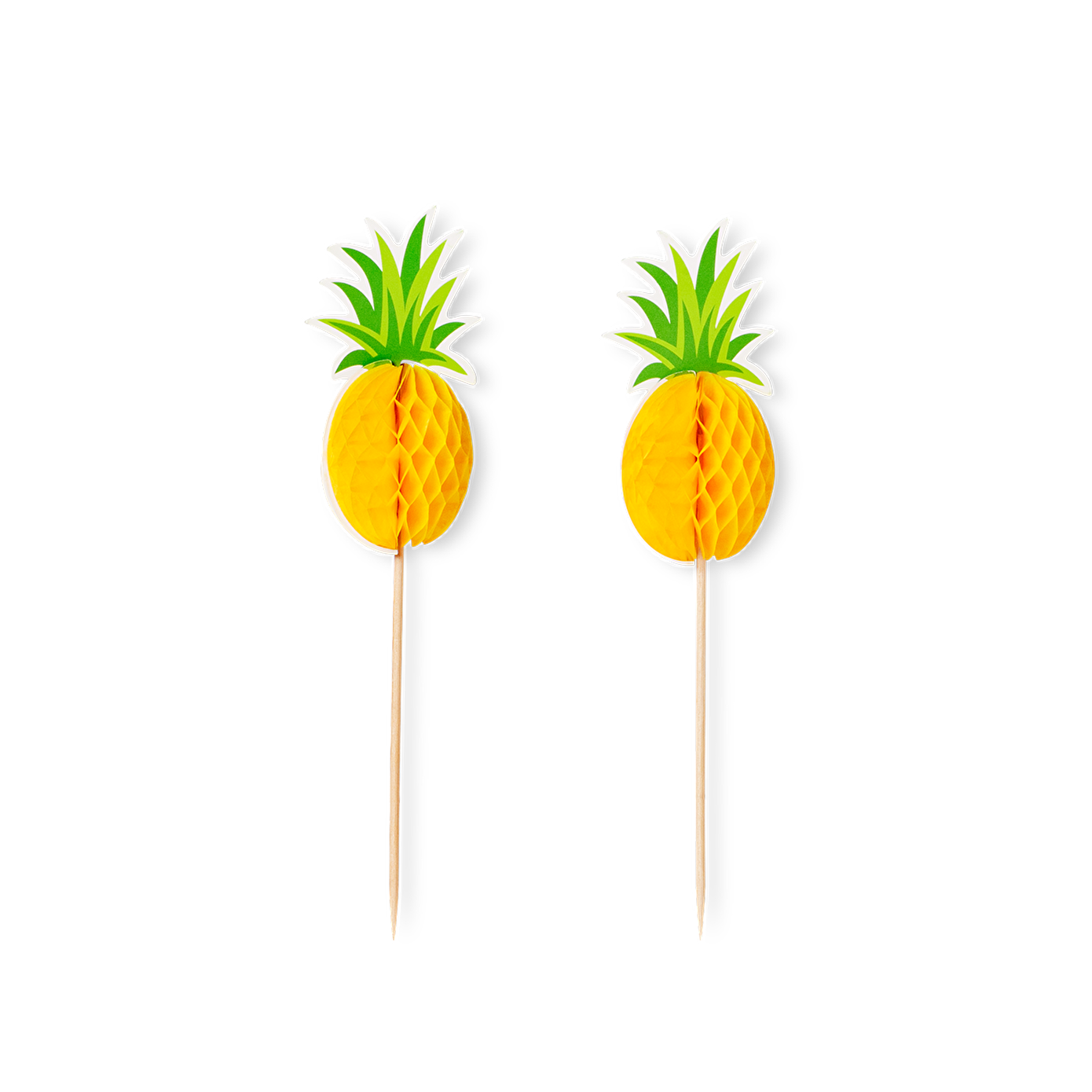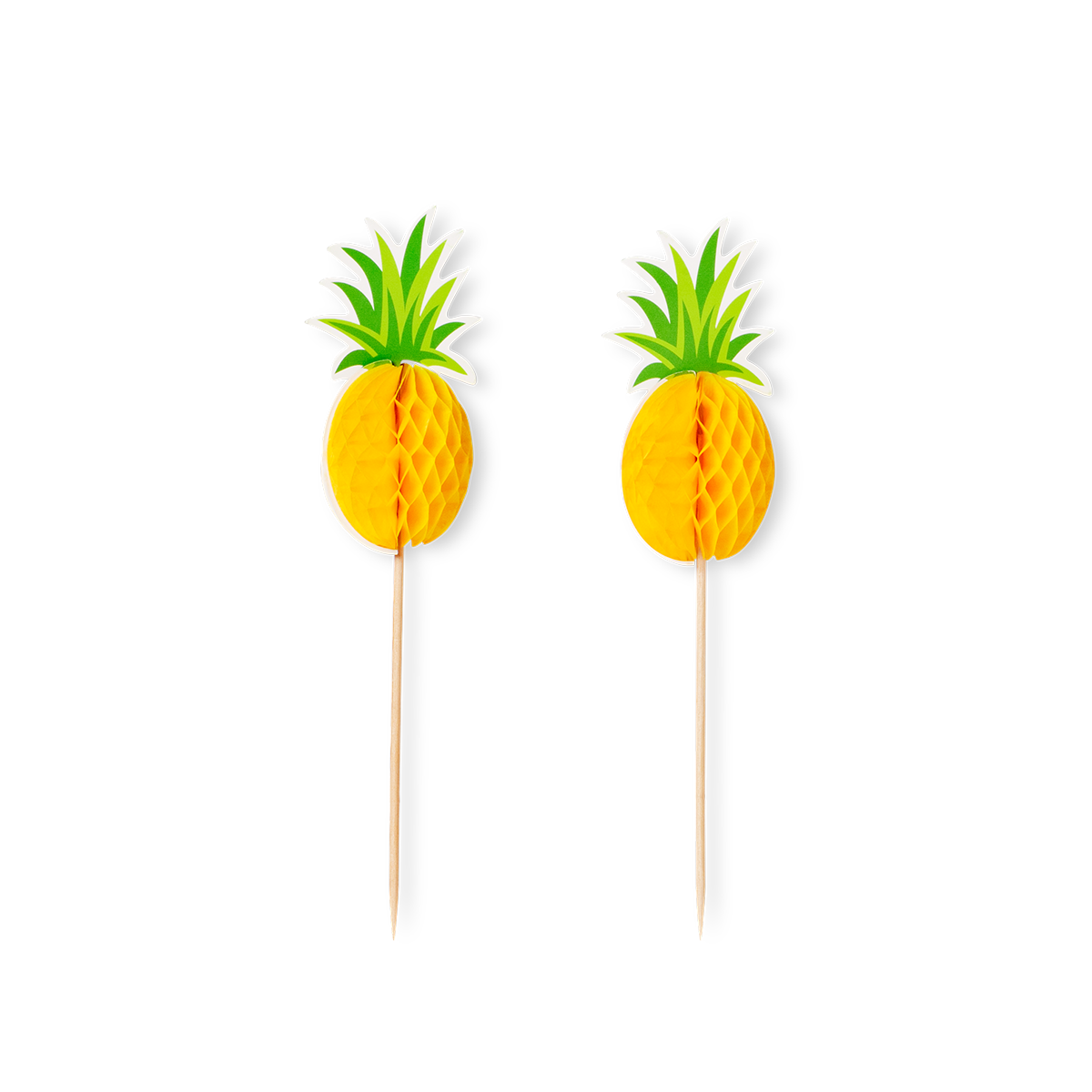 8'li Sarı Ananas Şeklinde Kürdan, partinize tropikal bir dokunuş katmak için mükemmel bir seçimdir. Eğlenceli sarı ananas süslemeli bu dekoratif çubuklar, aperatifleri, kokteylleri veya tatlıları şenlikli ve göz alıcı bir şekilde süsler. Kağıttan üretilen her çubuk, 15 x 3,4 cm boyutlarında olup, parmak yiyecekleri, meyve tabakları veya temalı içecekleri servis etmek için ideal büyüklüktedir.