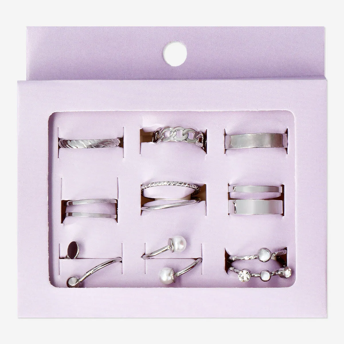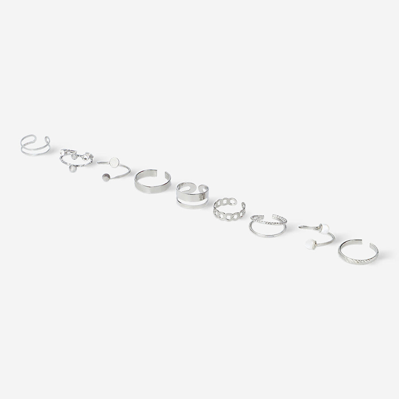 Flying Tiger Copenhagen 9'lu Ayarlanabilir Gümüş İnci Detaylı Yüzük Seti