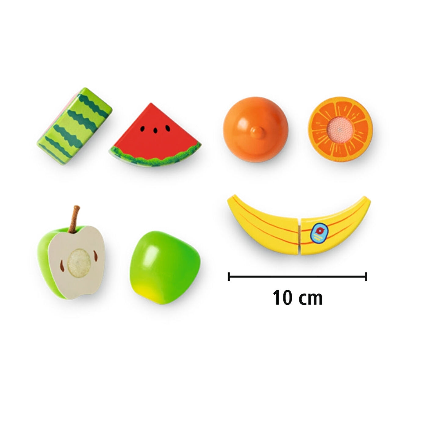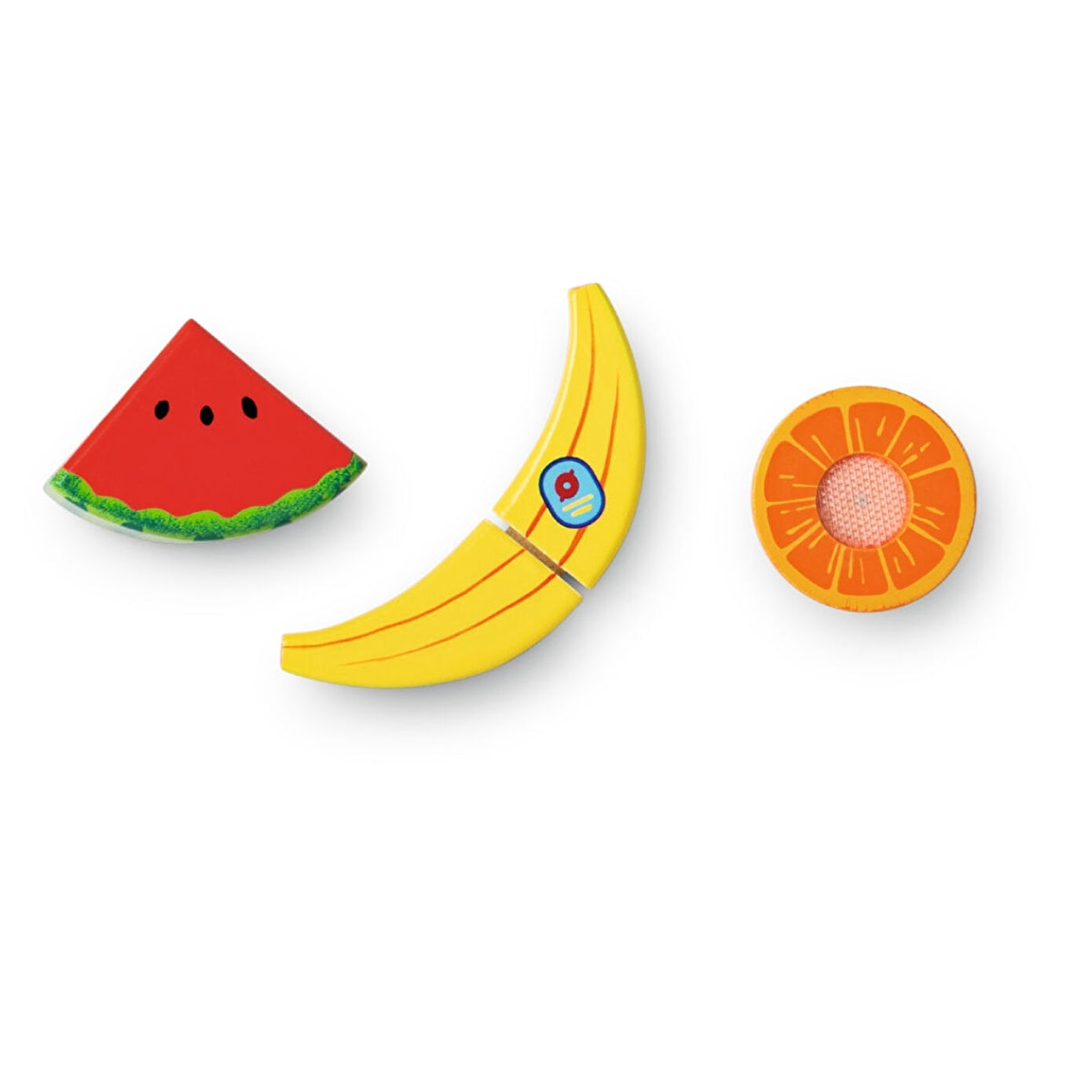 FSC sertifikalı ahşaptan üretilen bu oyuncaklar, güvenli ve dayanıklı yapısıyla uzun süre kullanılabilir. 2 yaş ve üzeri çocuklar için uygun olan set, hem evde hem de okul öncesi eğitim ortamlarında kullanılabilir. Çocukların rol yapma oyunlarına eğlenceli bir katkı sağlayan bu ahşap meyve seti, oyun mutfaklarının vazgeçilmez parçalarından biri olur.
