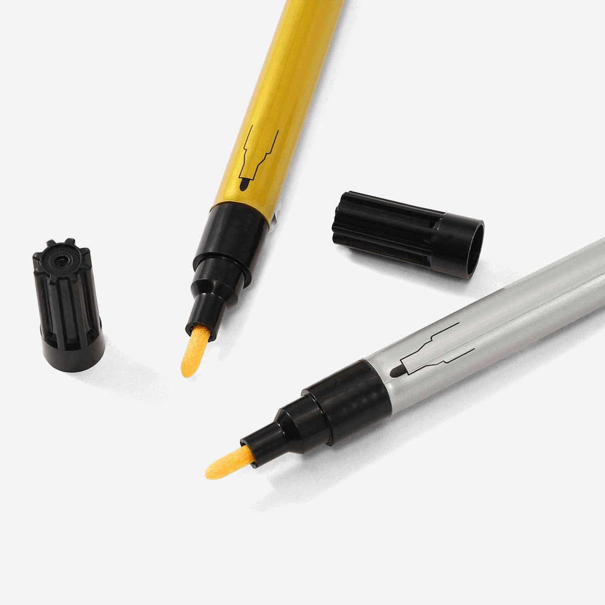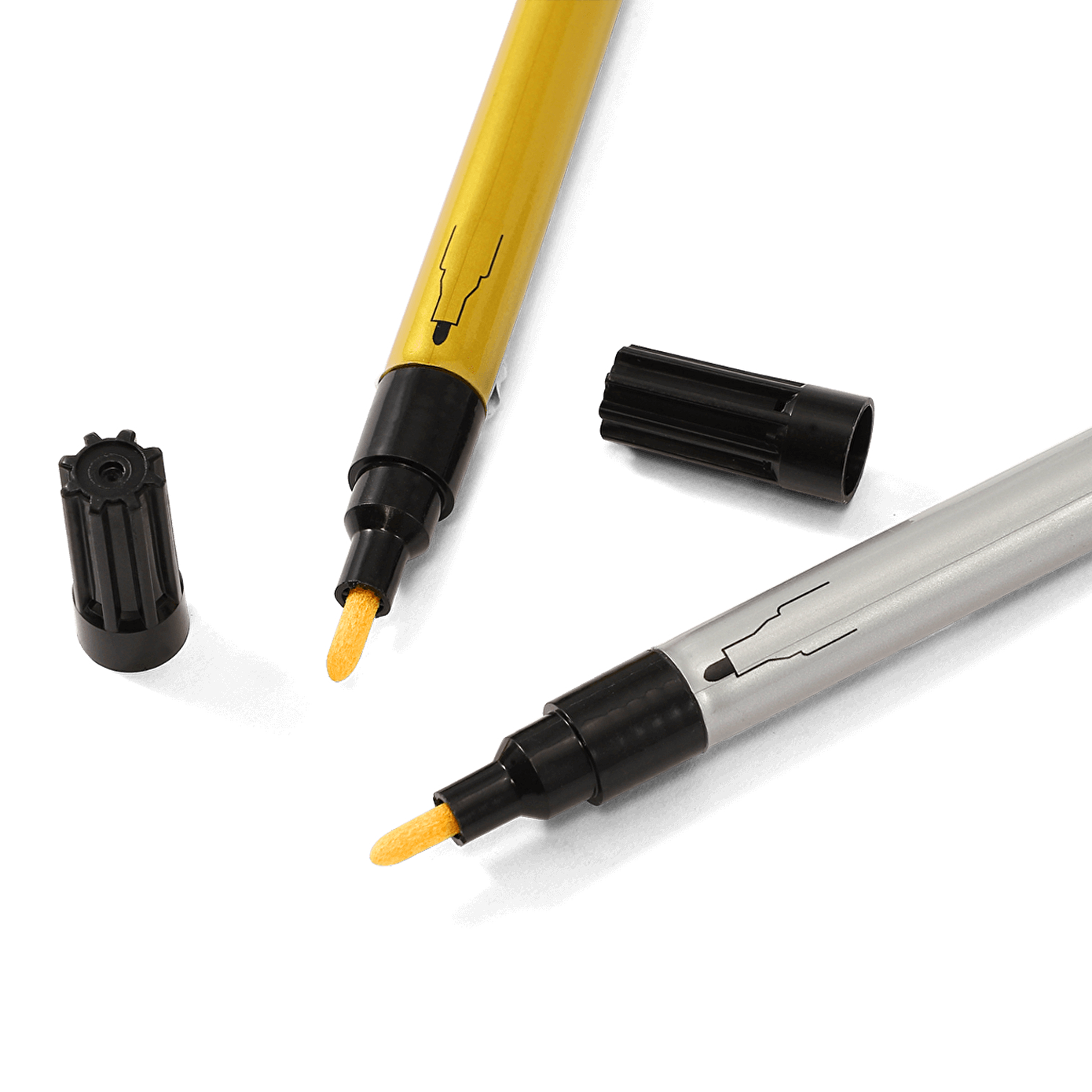Bu set, her biri altın ve gümüş renklerinde olan iki adet keçeli kalem içerir. Sanat projeleri, notlar, davetiyeler ve kartlar için mükemmel olan bu kalemler, çalışmalarına zarif ve ışıltılı bir dokunuş katmak için idealdir. Keçeli uçları, pürüzsüz ve akıcı bir yazım deneyimi sunar, böylece yazılarınız ve çizimleriniz daha belirgin ve göz alıcı hale gelir.