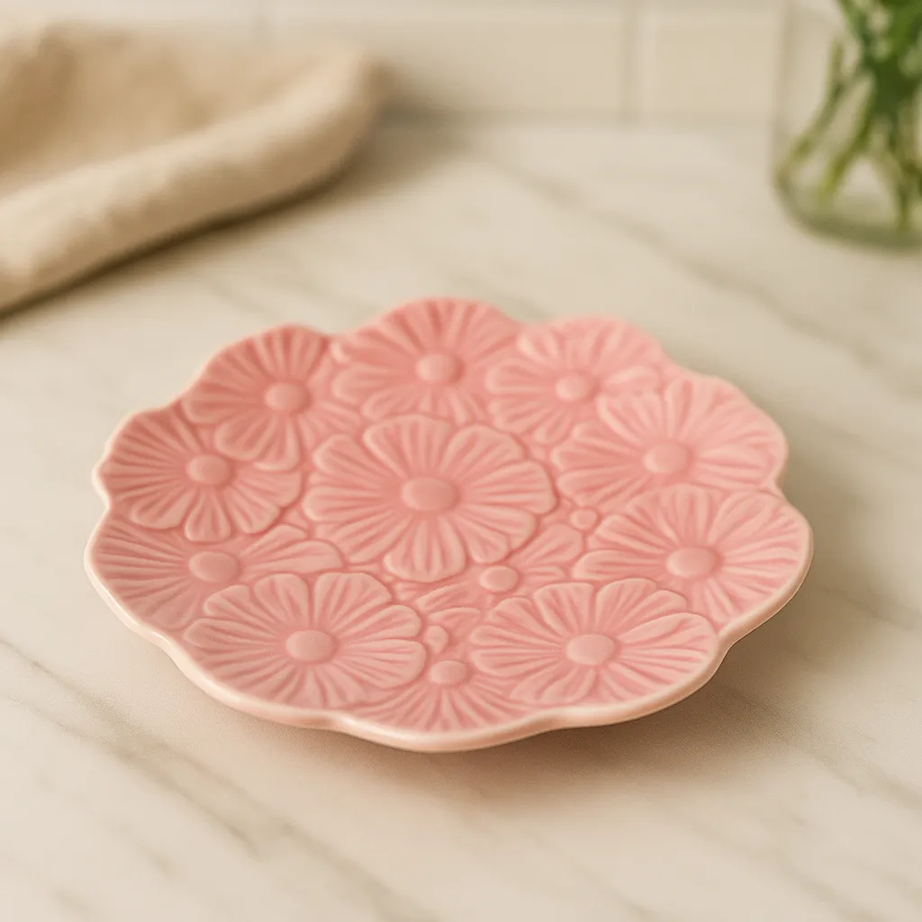 Küçük Pembe Çiçek Desenli Seramik Tabak, mutfak koleksiyonunuza zarif bir dokunuş ekler. Çiçek desenli tasarımı, her sofraya baharın taze ruhunu taşır, özellikle küçük porsiyonlar, tatlılar veya atıştırmalıklar için idealdir. Seramikten üretilmiş olan bu tabak, hem şık hem de dayanıklıdır ve gıda amaçlı kullanım için uygundur.