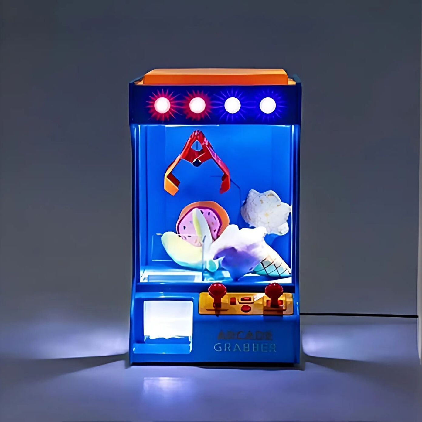 Oyun konsolu kontrolleriyle pençeyi yönlendirerek hedefi yakalamaya çalışın – hem çocuklar hem de yetişkinler için harika bir eğlence aracıdır. USB kablosu ile çalışır, renkli ışıkları ve retro havasıyla nostaljik bir atmosfer sunar. Evde, ofiste veya arkadaş buluşmalarında eğlenceli vakit geçirmek için ideal!
