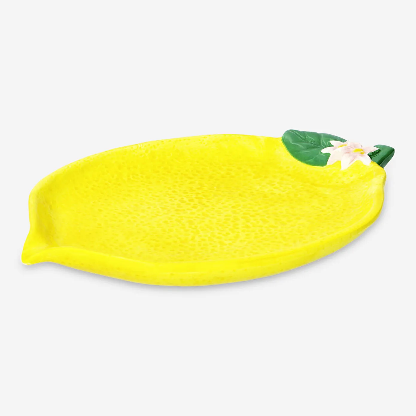 Sarı Limon Şeklinde Seramik Tabak, her yemek düzenine eğlenceli ve tropikal bir hava katmak için mükemmeldir. Canlı sarı rengi ve yeşil detaylarıyla taze limonun enerjisini yansıtan bu tabak, mezelerden tatlılara kadar geniş bir yelpazede kullanabileceğiniz ideal boyutlardadır. 21 x 2,2 x 15 cm boyutlarındaki bu tabak, şıklığı ve işlevselliği bir araya getirerek yemek masanıza zarif bir dokunuş ekler.
