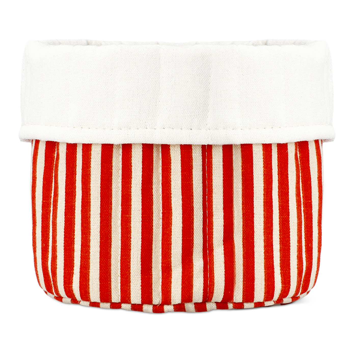 Yumuşak yapısı, sepetin kolayca raflara, masalara veya tezgahlara yerleştirilmesini sağlar. Hem işlevselliği hem de dekoratif estetiği birleştiren Turuncu Çizgili Yuvarlak Sepet, evdeki alanınızı düzenlerken aynı zamanda modern bir hava katacak şık bir aksesuardır.