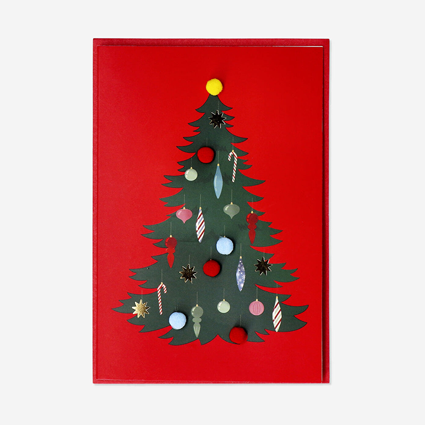 Yılbaşı Ağacı Desenli Kırmızı Tebrik Kartı, en sıcak dileklerinizi iletirken tatil sezonuna neşeli bir cazibe katar. Zengin kırmızı arka plan üzerinde detaylı bir Noel ağacı tasarımı, renkli pom pom süslemelerle tamamlanarak kartınıza dokulu ve canlı bir görünüm kazandırır. 23 x 17 x 0,04 cm boyutlarındaki bu kart, kaliteli kağıttan üretilmiş olup zarif bir uyumlu zarf ile birlikte gelir, böylece postalamaya veya elden teslim etmeye hazırdır.