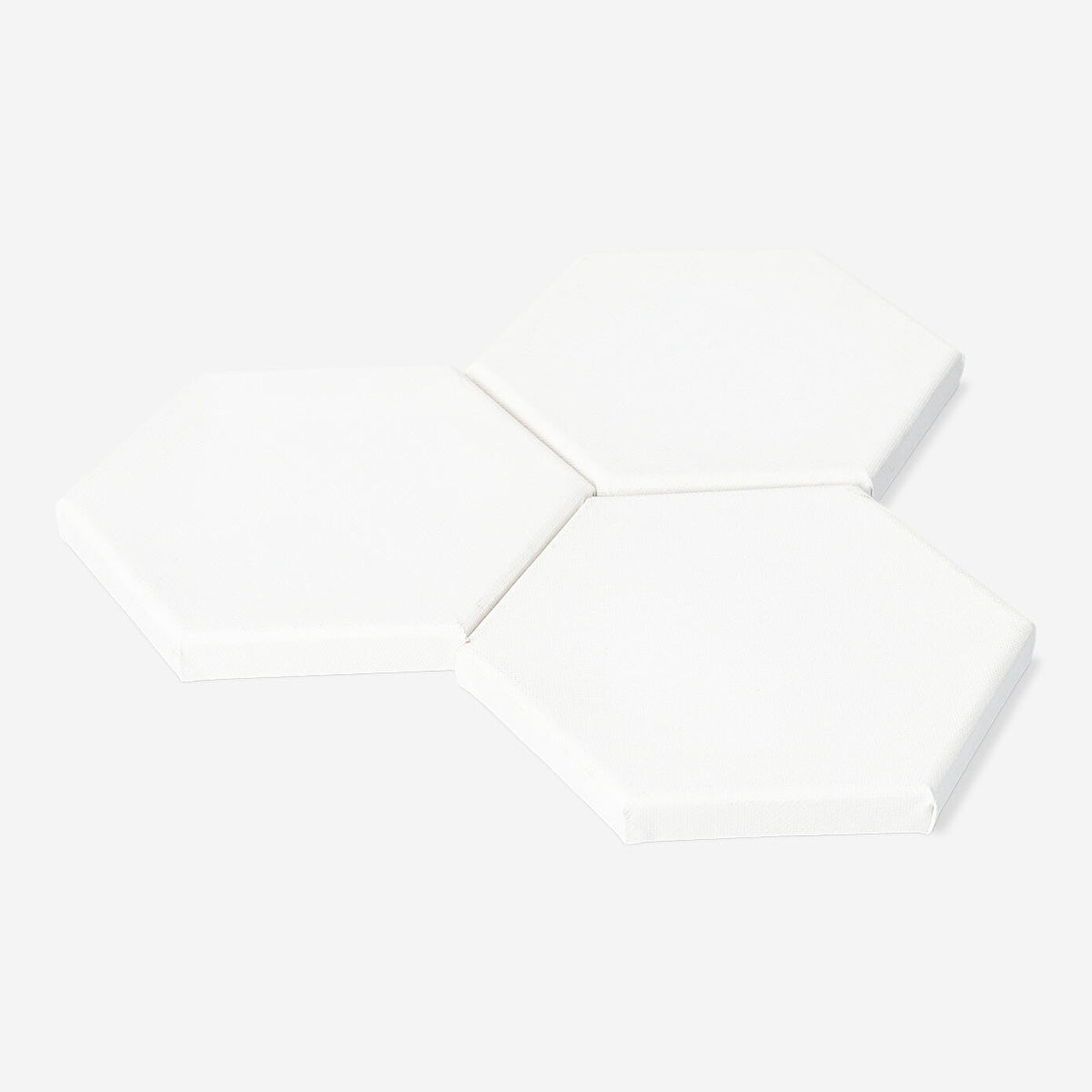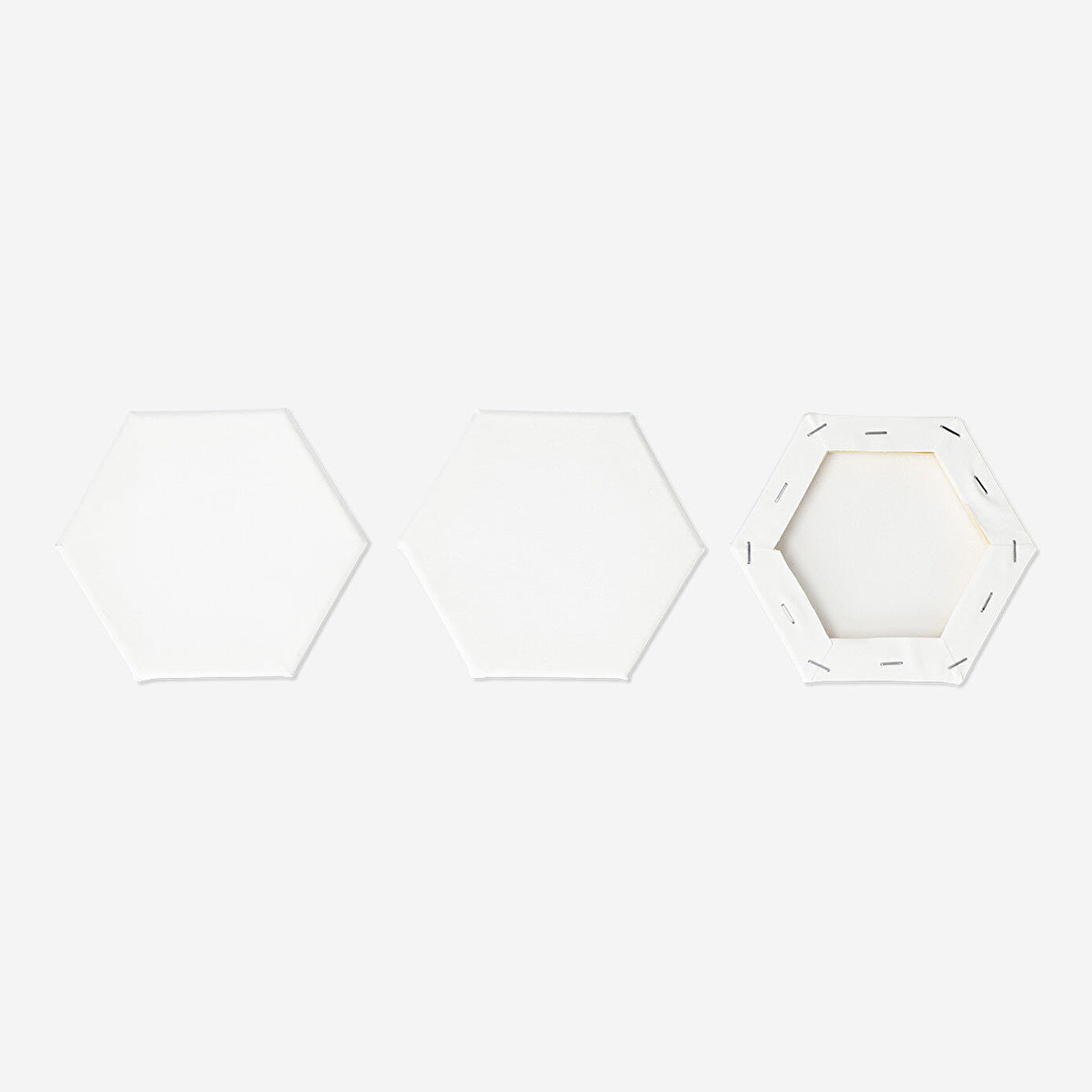 Yaratıcılığınızı bu benzersiz altıgen şekilli tuvallere serbest bırakın. 13 x 15 x 1,5 cm ölçülerindeki bu set, çeşitli sanatsal projeler için mükemmel olan 3 beyaz, astarlı tuval içerir.