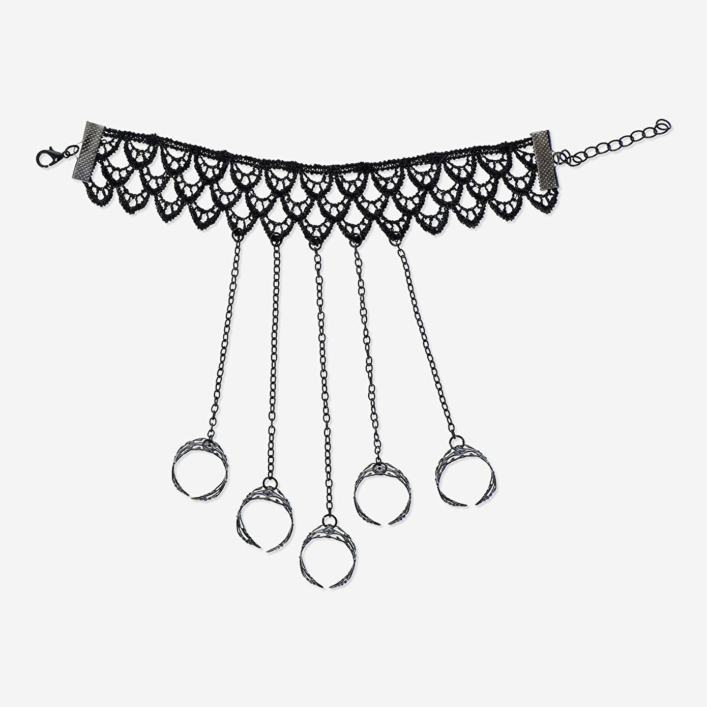 Siyah Dantelli El Takısı ile dikkatleri üzerine çek! Metalden üretilmiş bu şatafatlı aksesuar, ince zincirler ve parmak halkaları ile detaylandırılmıştır. 12 x 15 x 0.1 cm ölçülerindeki bu el takısı, giydiğin her kıyafete gotik bir zarafet katmak için idealdir.