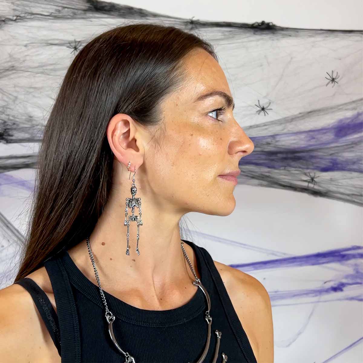 Çarpıcı tasarımı ve hareketi, bu küpeyi sohbet başlatıcı bir parça ve takı koleksiyonunun vazgeçilmezi yapar. Kendine özgü ve eğlenceli aksesuarları sevenler için ideal olan bu iskelet küpe, stilini yükseltmek için harika bir seçenektir.