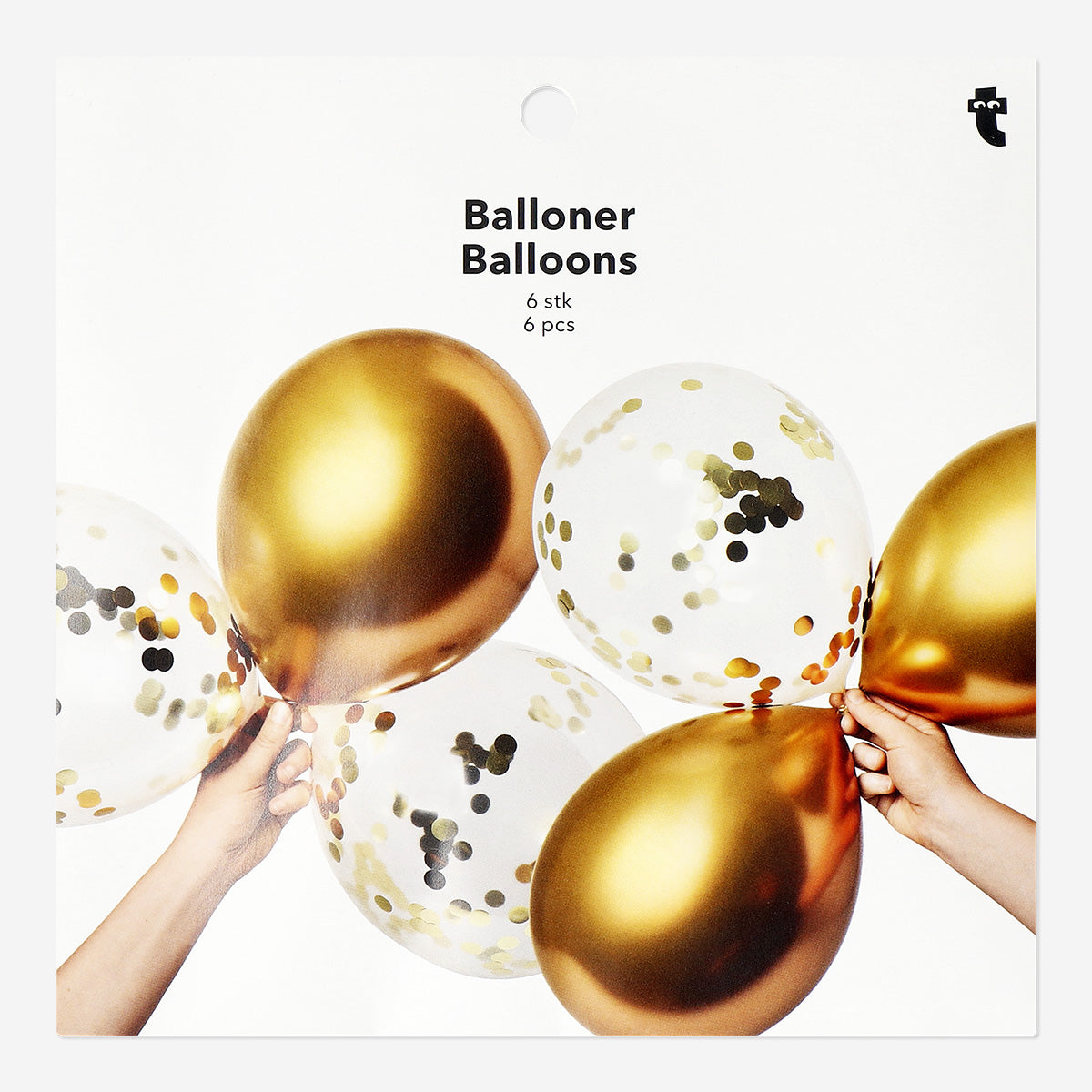 Plastikten üretilen bu şişirilebilir süslemeler, doğum günleri, düğünler ve şenlikli toplantılar gibi özel günler için mükemmel bir tercih sunar. Balonlar kolayca şişirilebilir ve çok yönlü kullanımlarıyla kutlamalarınızı renklendirir. Göz alıcı tasarımları ve metalik dokusu, etkinliklerinize zarif bir atmosfer yaratır. 6'lı Gold Detaylı Konfetili Balon Seti, misafirleriniz için unutulmaz bir dekorasyon sağlayarak kutlamalarınıza anlam katar.