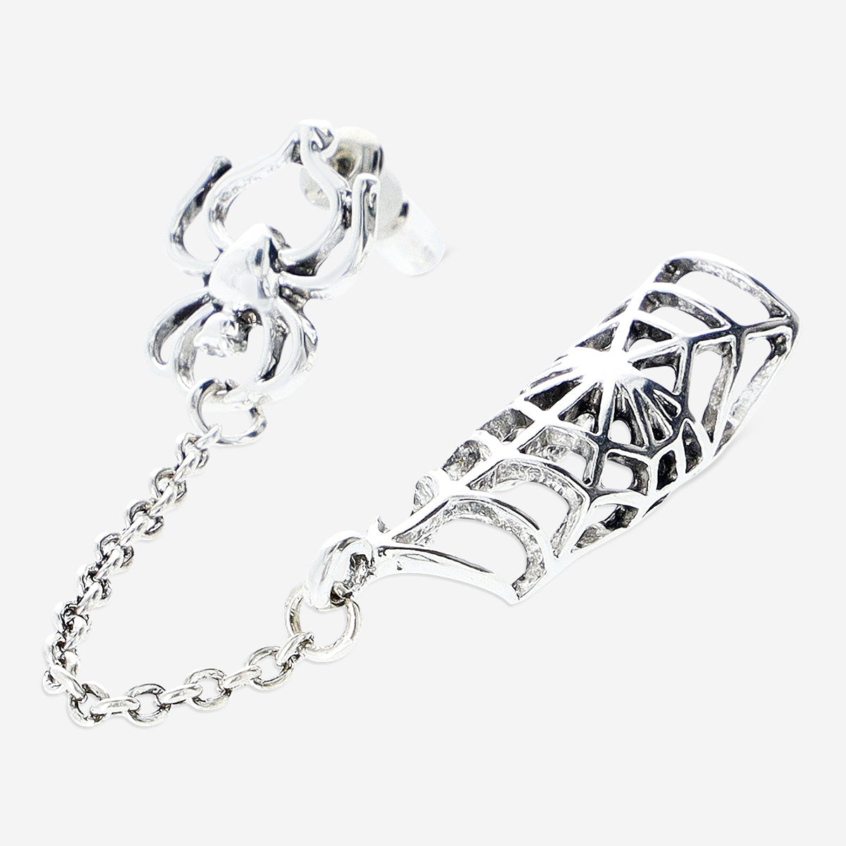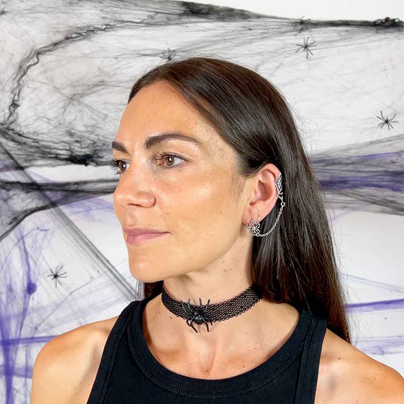 Örümcek Şeklinde Metal Küpe, Halloween temalı şık bir aksesuar olarak görünümünüze cesur ve dramatik bir dokunuş katar. Gümüş kaplamalı bu tasarım, örümcek motifini narin bir ağ esintisiyle birleştirerek zarif ama dikkat çekici bir stil sunar. Kostüm partilerinden günlük hayatta mevsime özel bir detay olarak kullanmaya kadar çok yönlüdür.